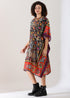 Vibrant Art Print Mango Silk High-Low ShirtVibrant Art Print Mango Silk High-Low Shirt