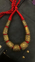 This Brass Metal necklace features a combination of golden and black threads, making it a unique and versatile accessory. The high-quality brass material adds durability and elegance, while the intricate threadwork adds texture and depth. Perfect for a touch of sophistication to any outfit.