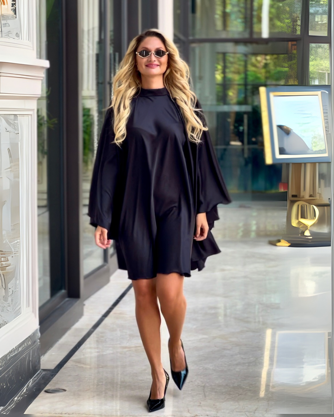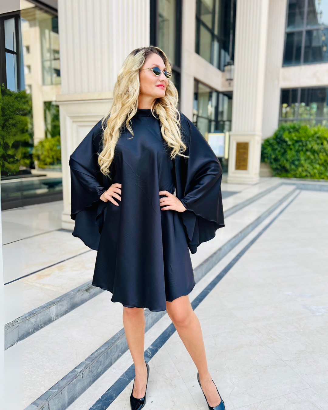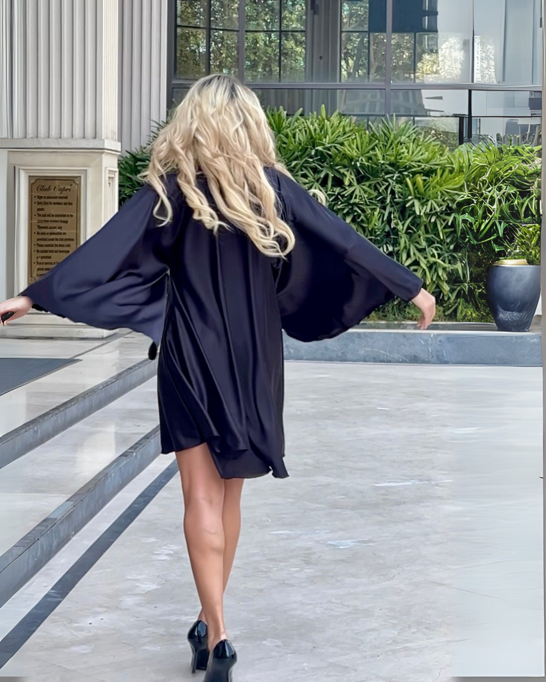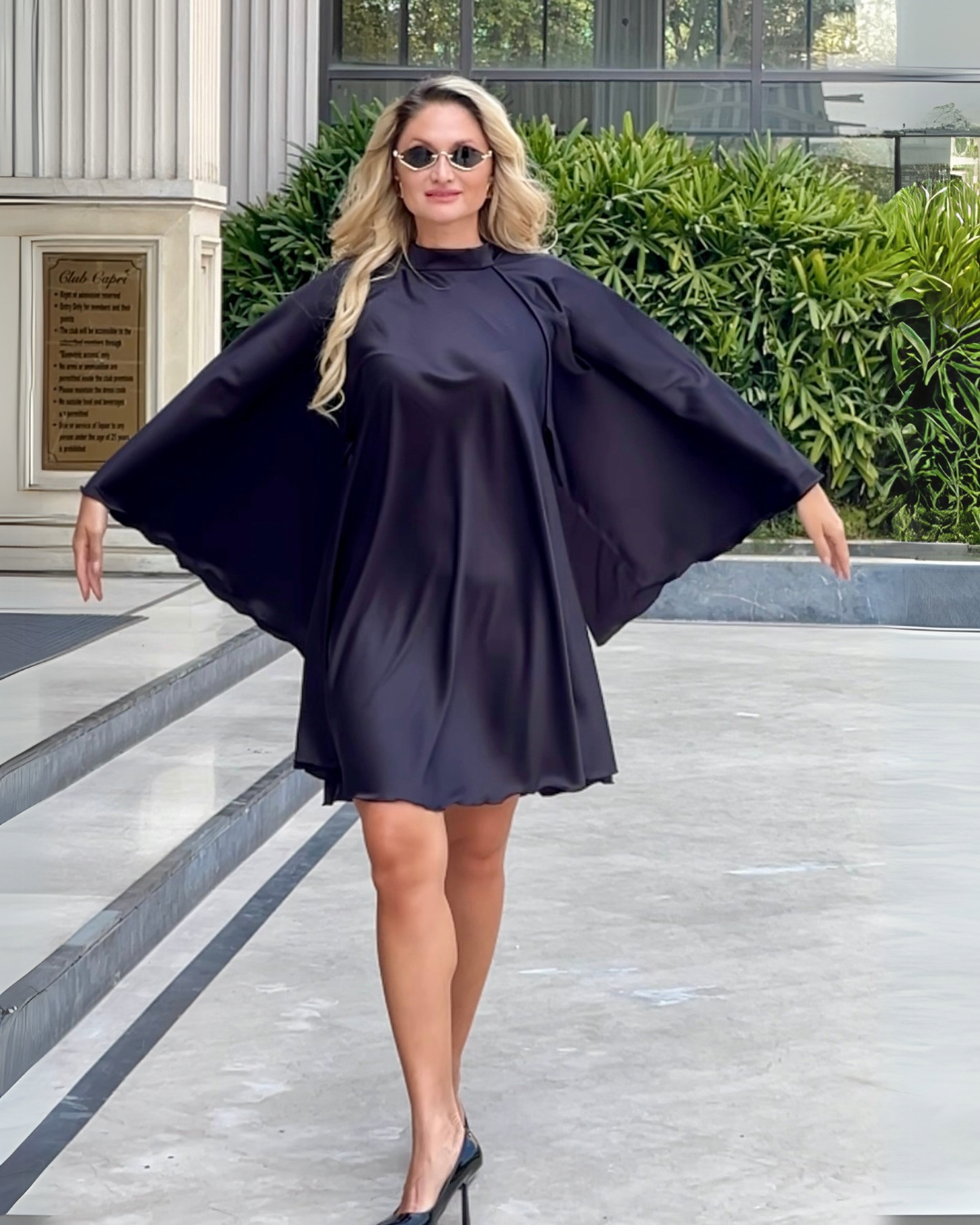Step out in effortless style with our Elegant Royal Blue Batwing Sleeve Mini Dress, a perfect blend of comfort and chic sophistication. This stunning short dress features gracefully draped batwing sleeves (also known as dolman sleeves), offering a relaxed yet fashionable silhouette, ideal for any occasion.