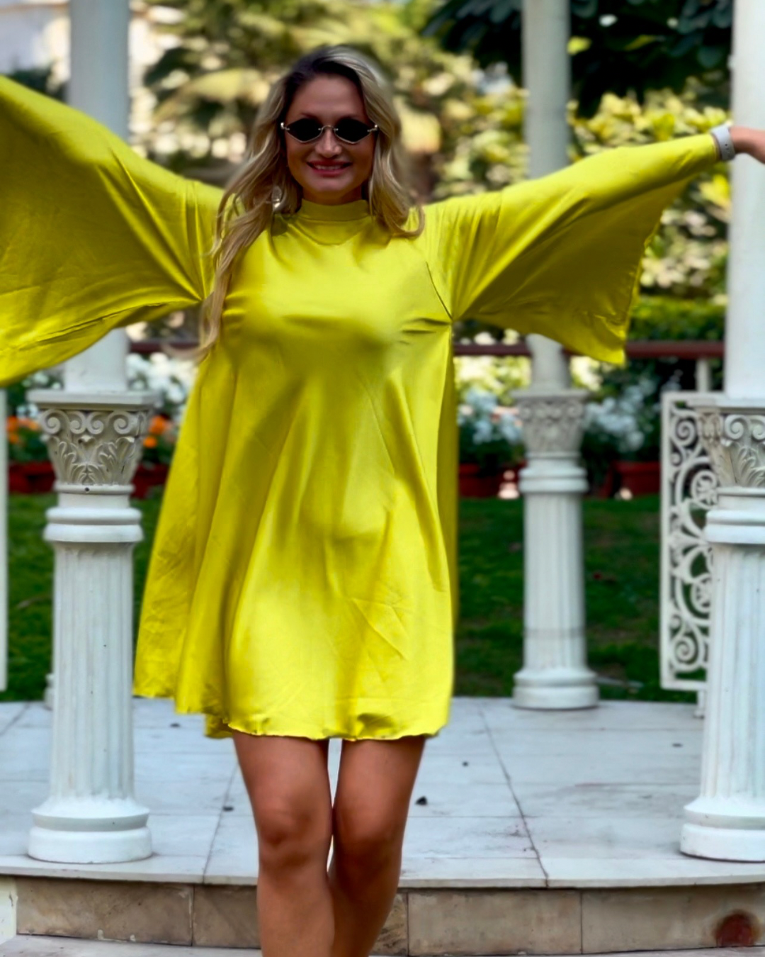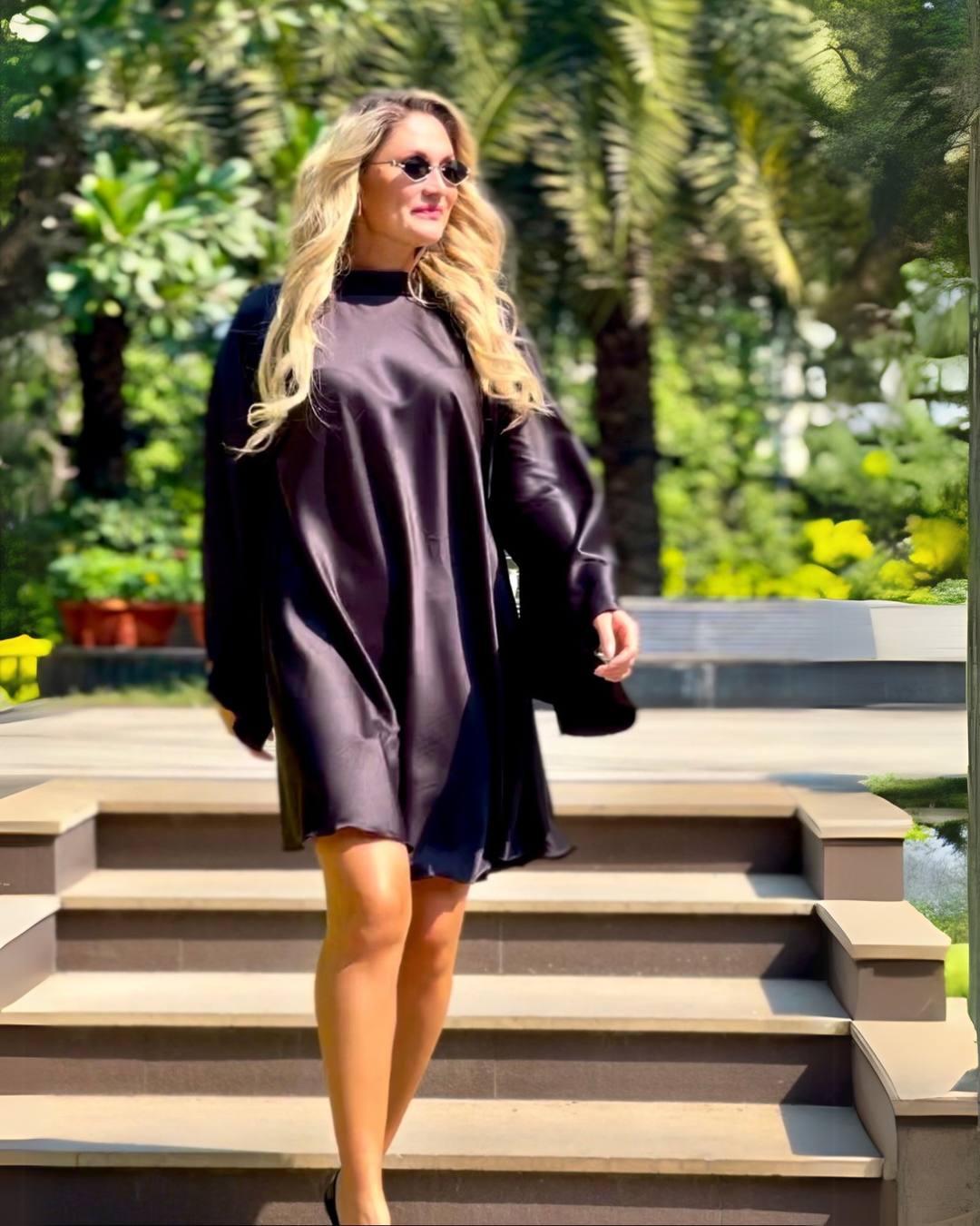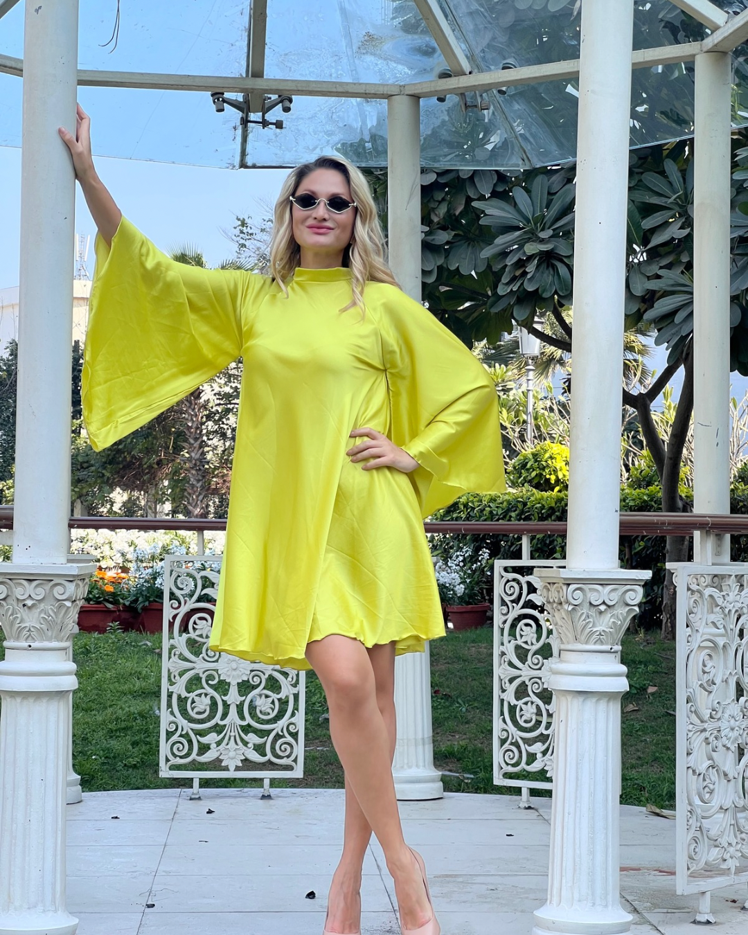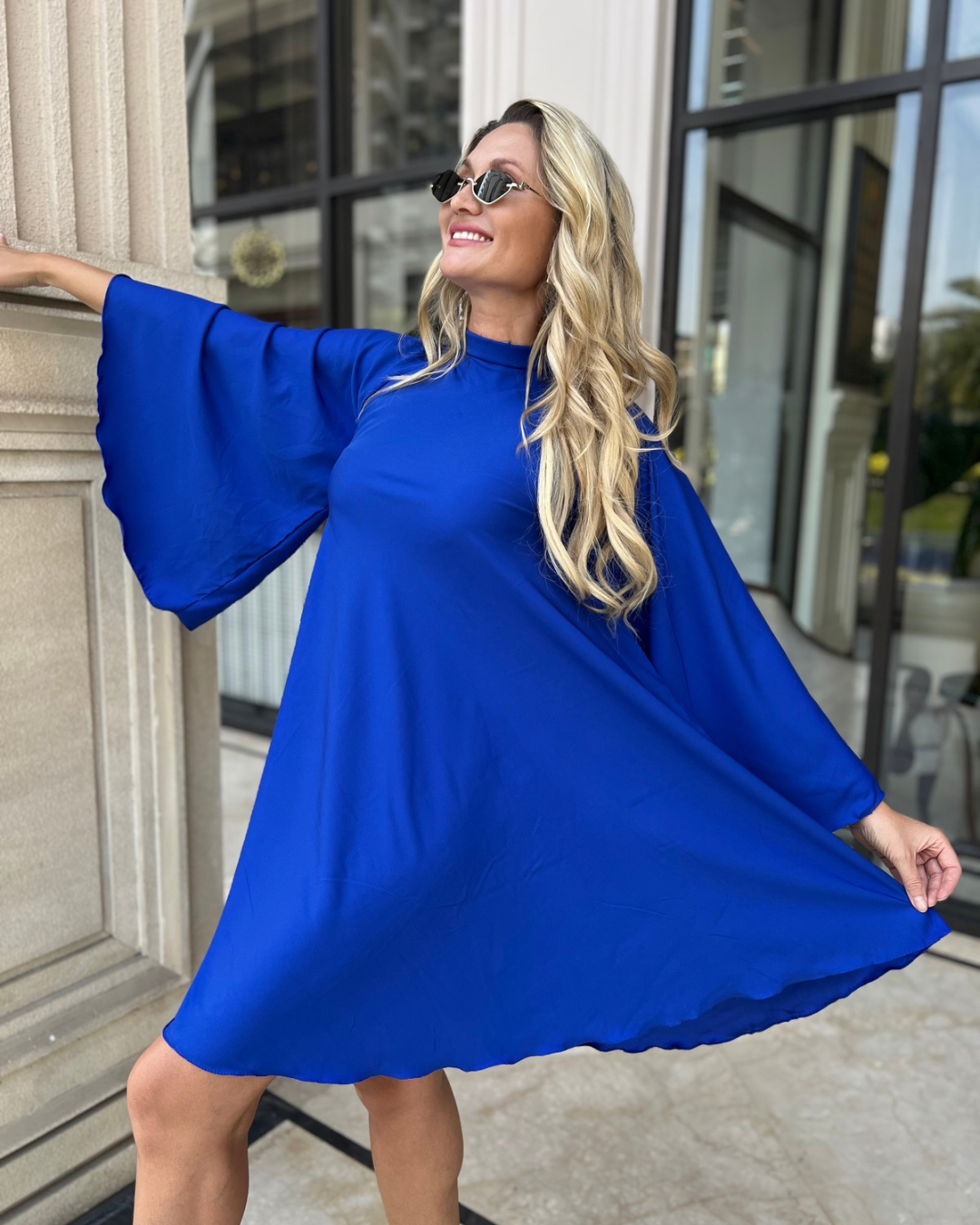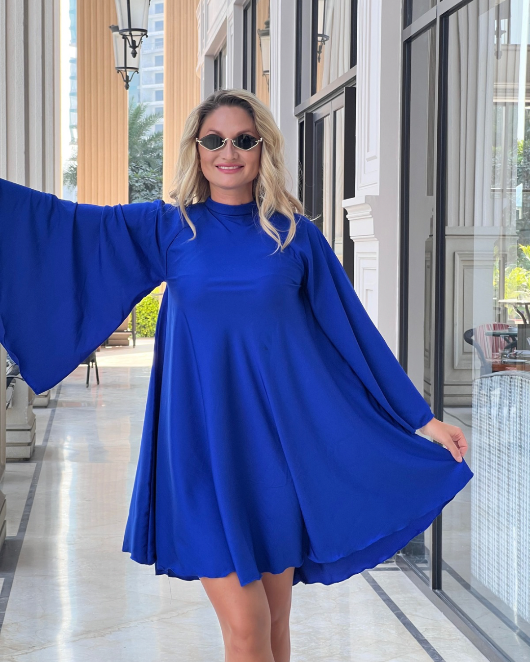 Elegant Royal Blue Batwing Sleeve Mini Dress for Women | Chic High Neck Loose Fit Cocktail & Casual Dress