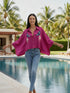 Women’s Fuchsia Pink Oversized Shirt with Embroidered Birds | Button-Down High-Low Kaftan Style Top for Casual & Party Wear