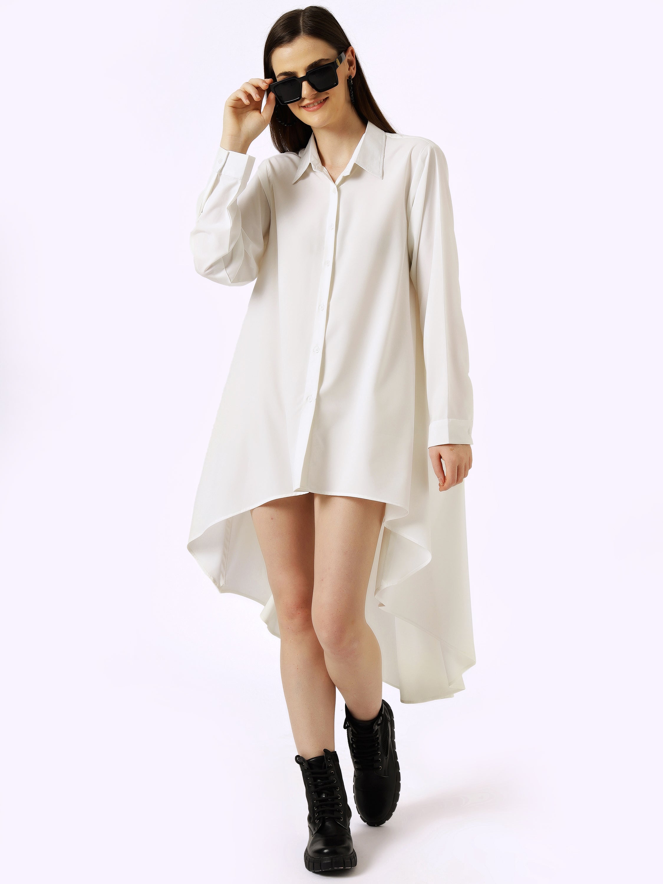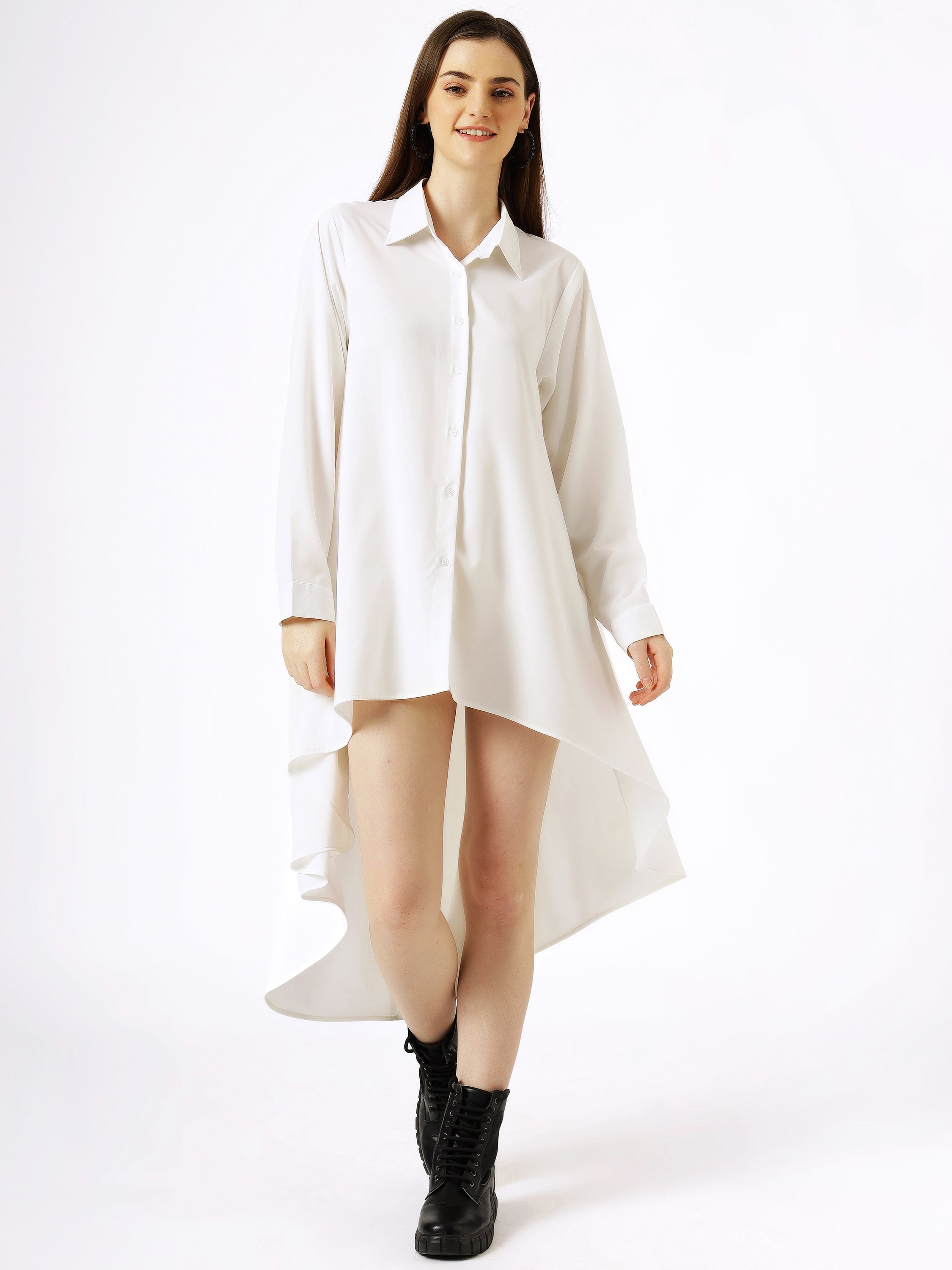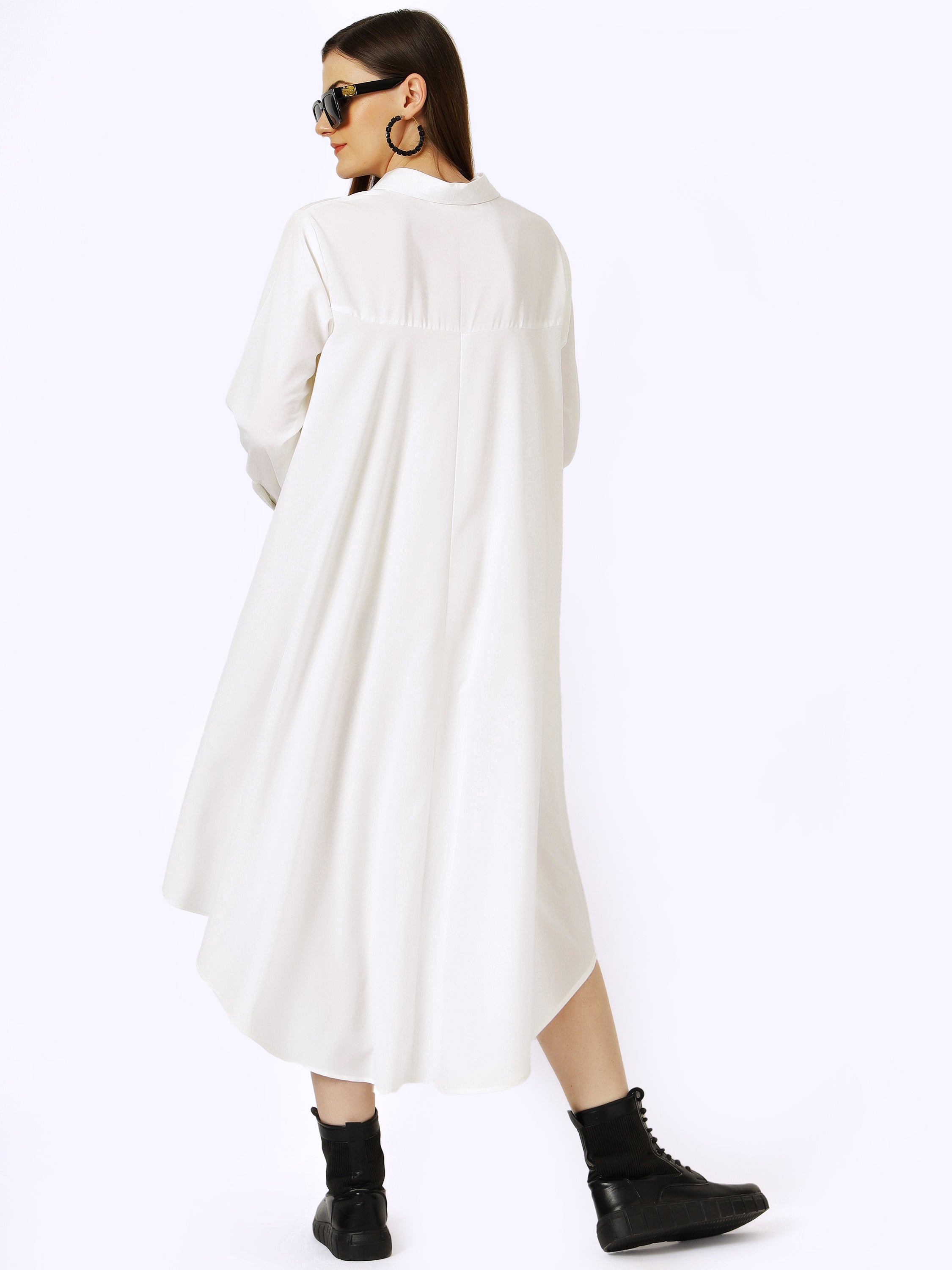 Classic White High-Low Shirt Dress with Oversized Fit