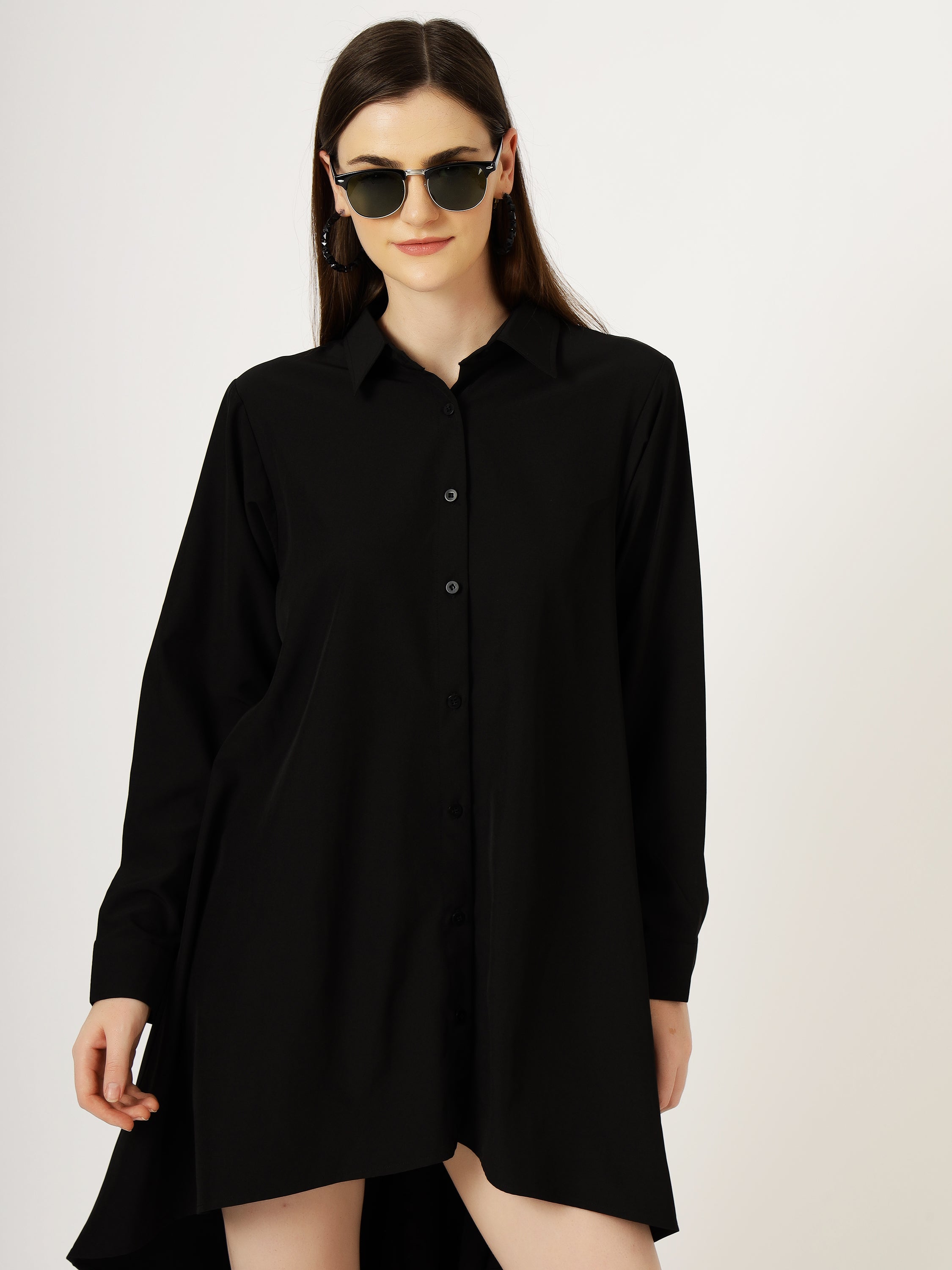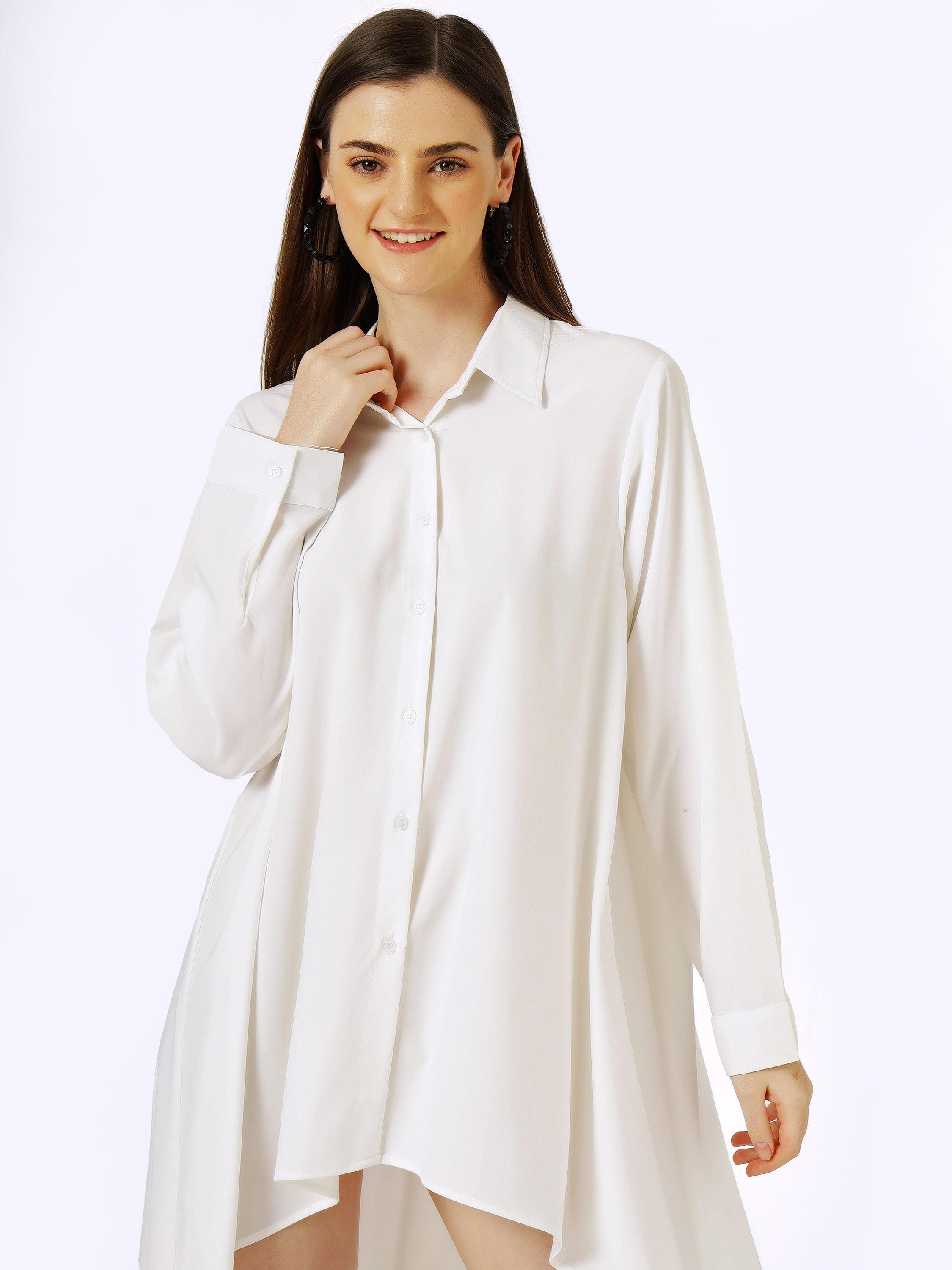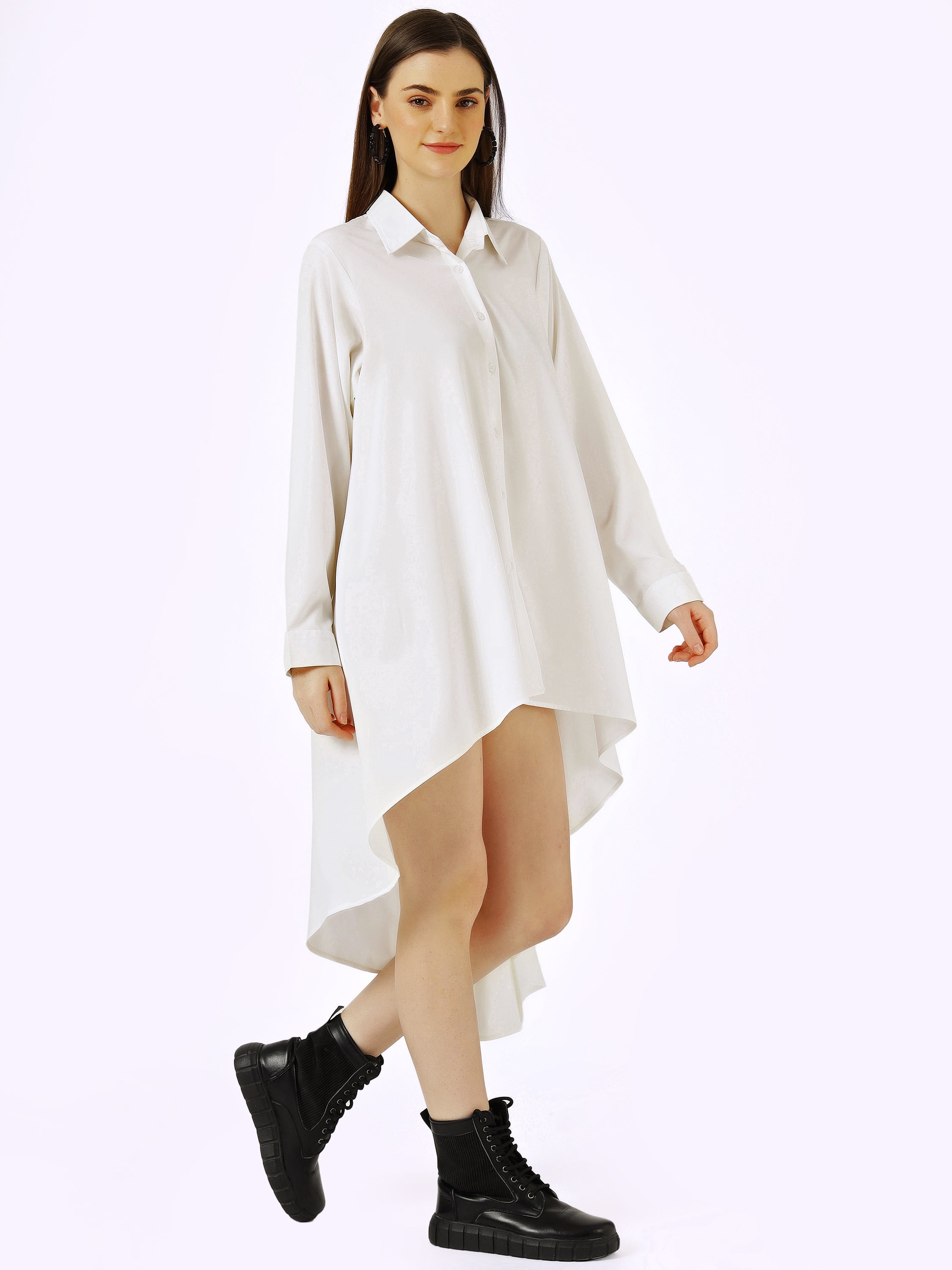 Classic White High-Low Shirt Dress with Oversized Fit