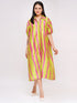 Step out in style with this trendy lime green and pink striped shirt dress for women, designed to keep you chic and comfortable all day long. Crafted from lightweight, breathable fabric with a subtle sheen, this oversized midi dress features a classic collared neckline, button-down front, and half puff sleeves for a relaxed yet elegant look.