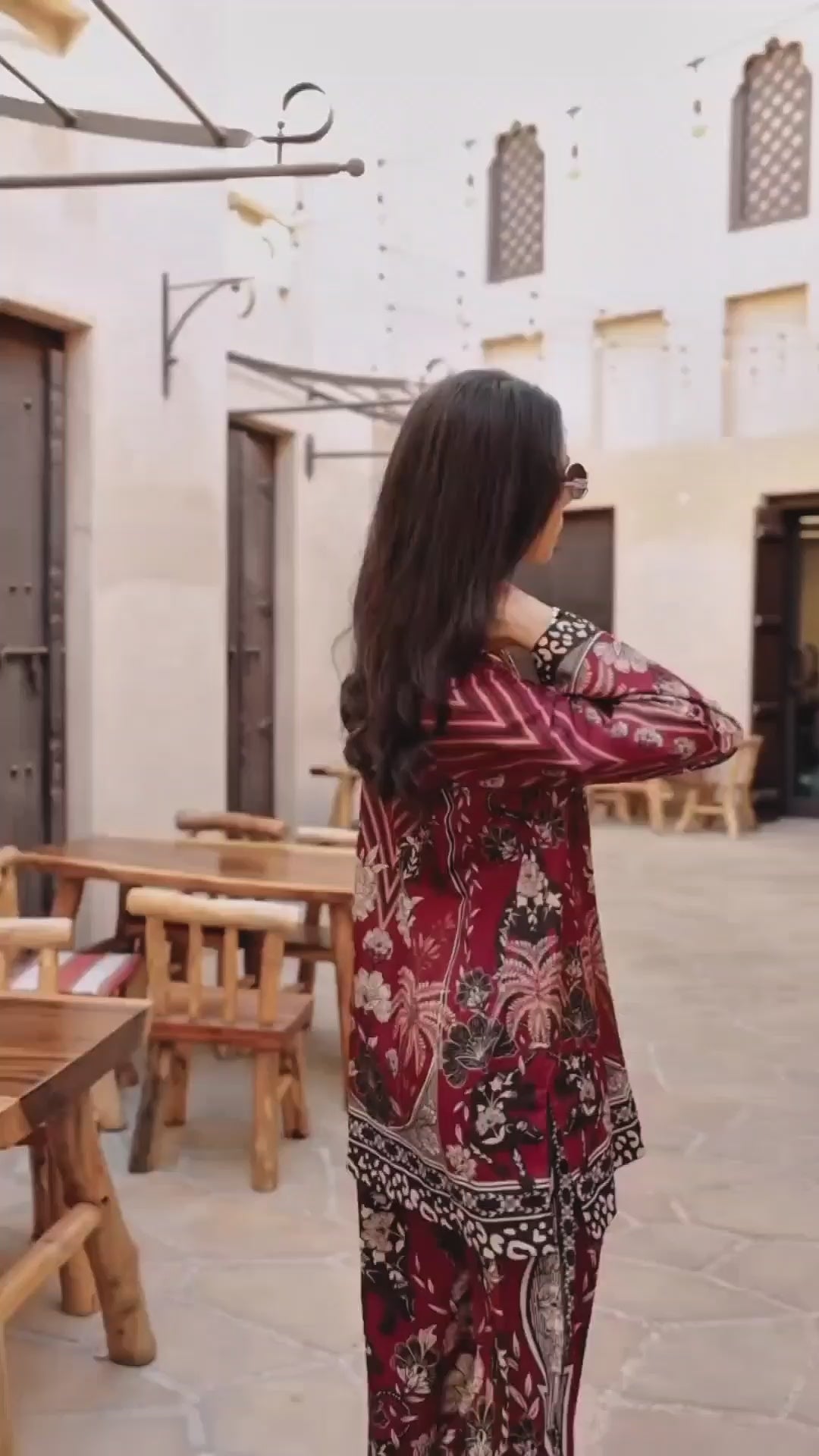 Make a sophisticated statement with our Maroon & Black Printed Suit. This elegant two-piece ensemble features a beautifully crafted shirt and matching trousers, both adorned with a rich, intricate print. The maroon and black color palette is enhanced with beige and off-white floral and paisley-inspired motifs, creating a luxurious and timeless look. The V-neckline and full-length sleeves are designed for comfort and style, making this outfit perfect for a wide range of occasions. Whether you're attending a casual day event, a semi-formal gathering, or simply looking for a chic and comfortable outfit for daily wear, this suit is a versatile addition to your wardrobe.
