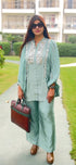 Indulge in the luxurious mint green Coord set with rich hand embroidery. Perfect for any occasion, this set exudes sophistication and elegance. The intricate hand embroidery adds a touch of opulence, while the color brings a refreshing and calming vibe. Elevate your style with this beautiful Coord set.