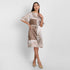 Expertly crafted from luxurious silk, this Mocha Latte Short Silk Kaftan Dress is a must-have for any fashion-forward woman. The short length adds a touch of modernity to this traditional garment. Perfect for any occasion, it effortlessly drapes over the body for a flattering and comfortable fit.
