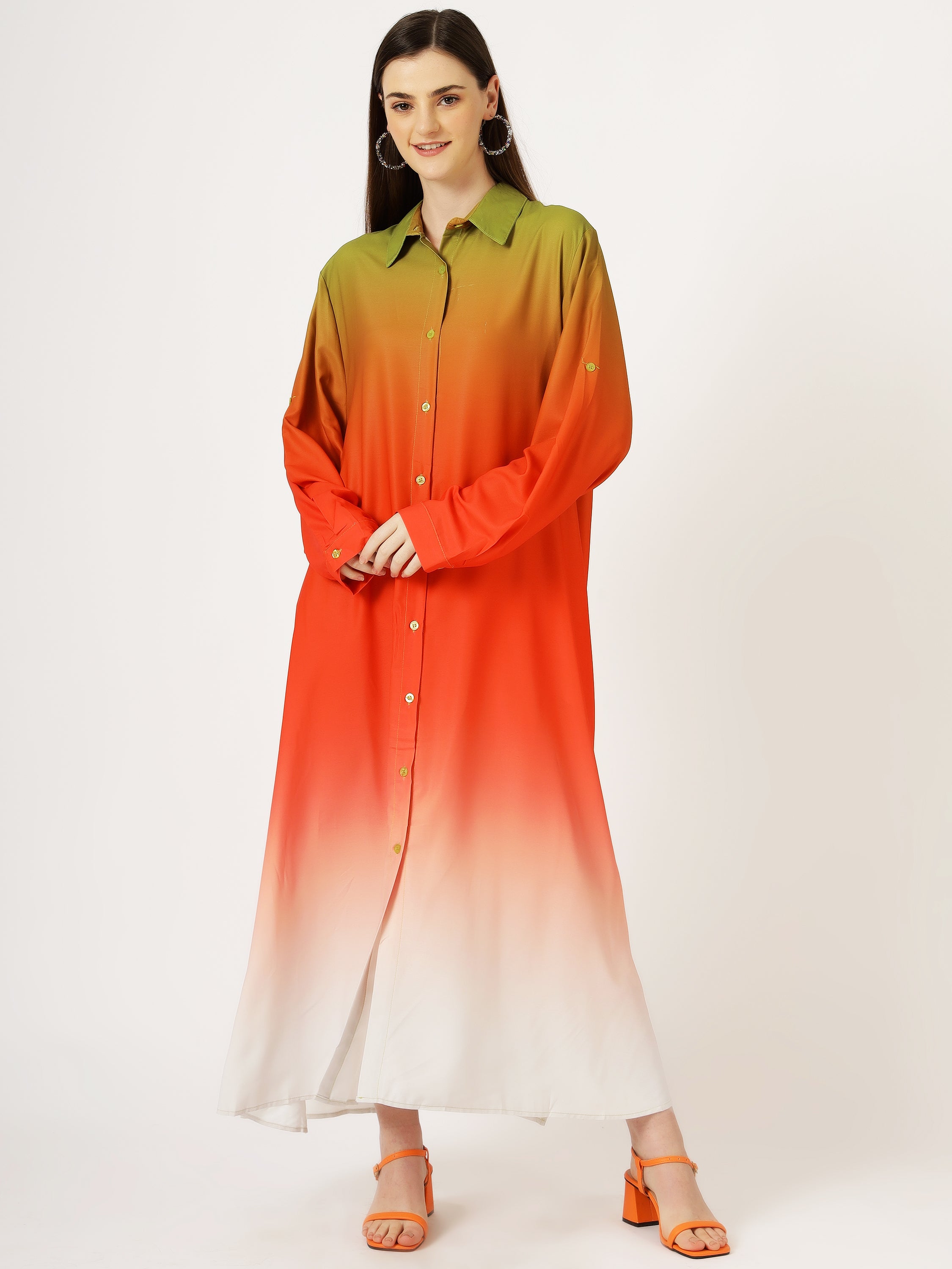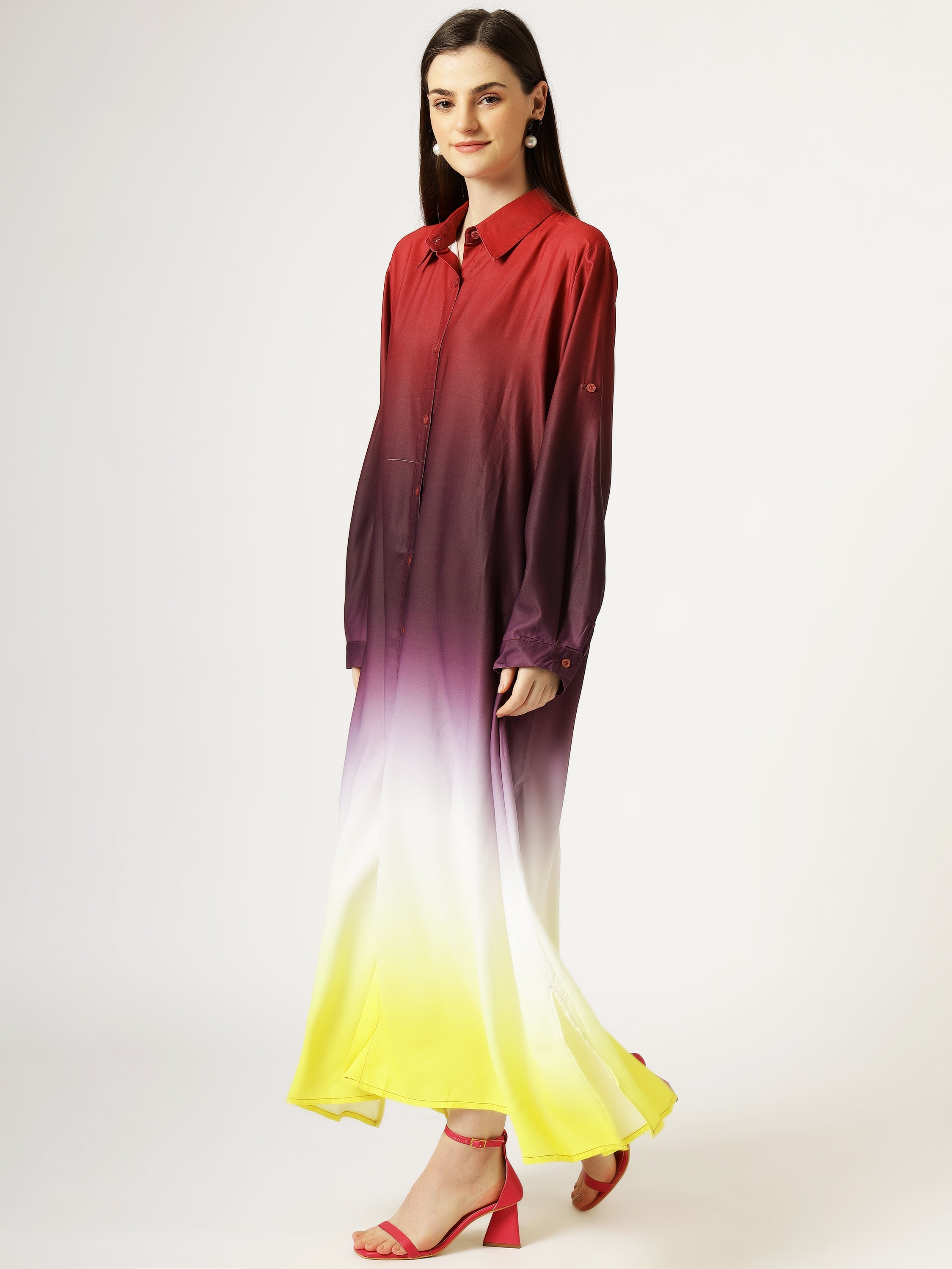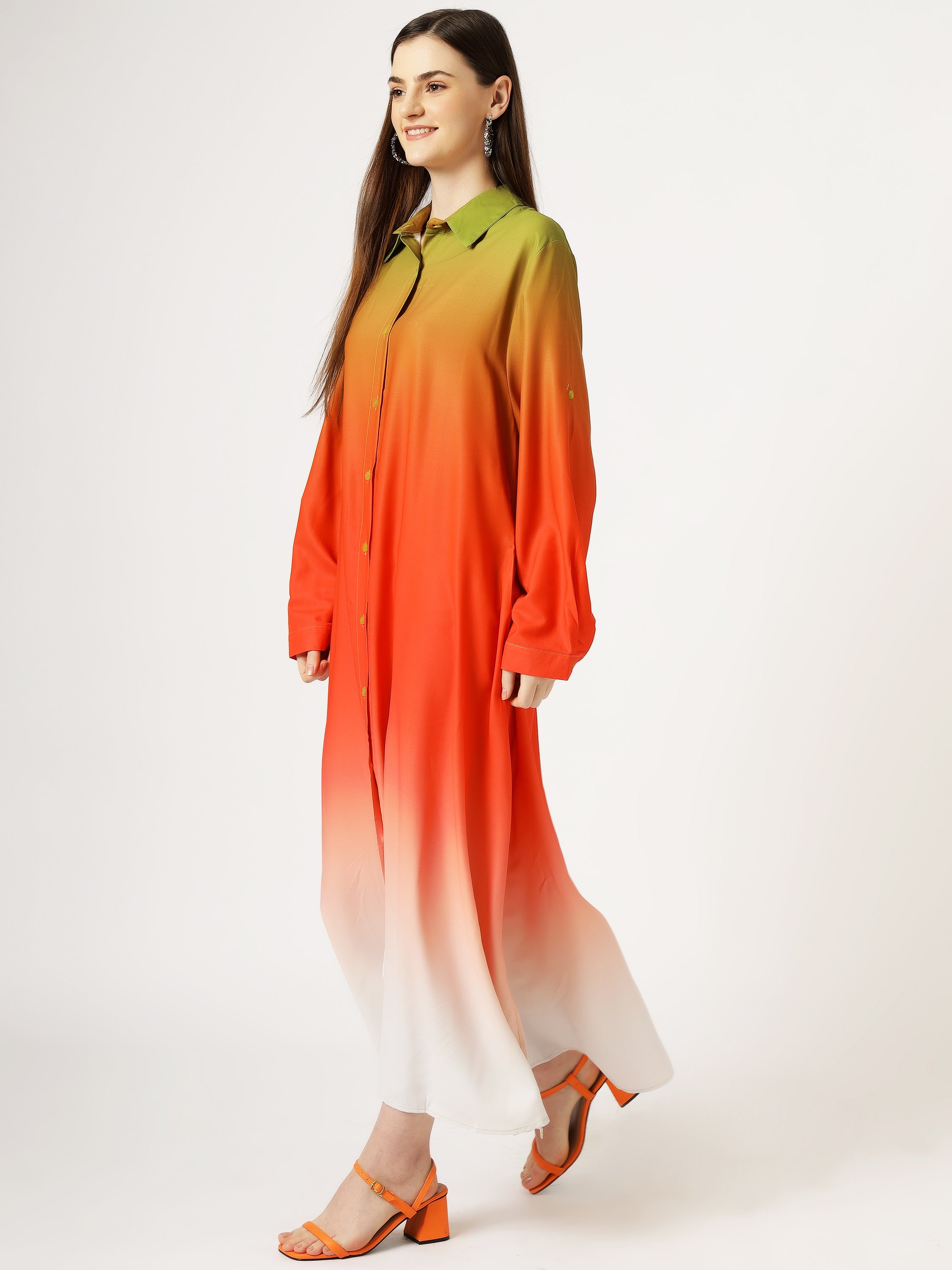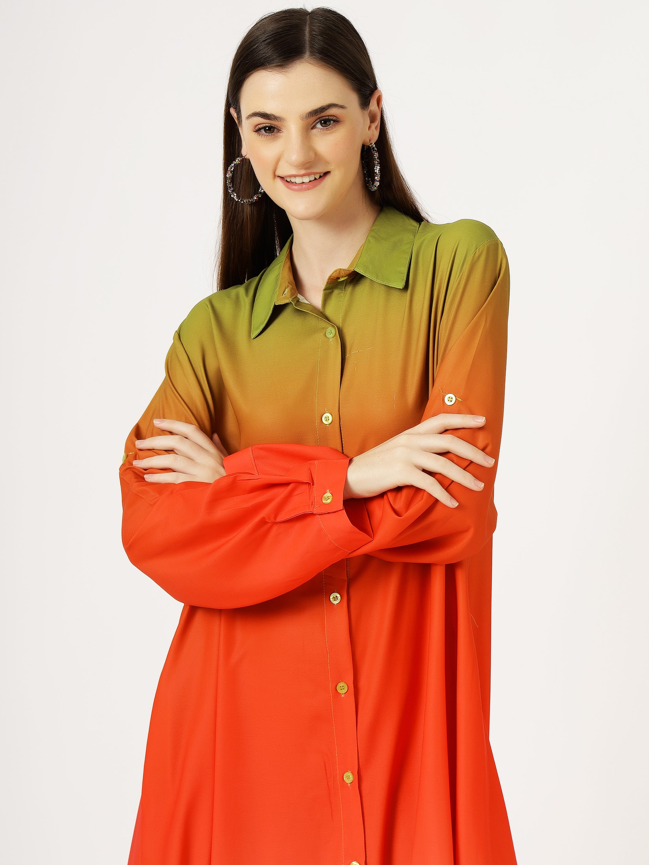 Moss Crepe Shirt Dress for Women in Green and Red Gradient