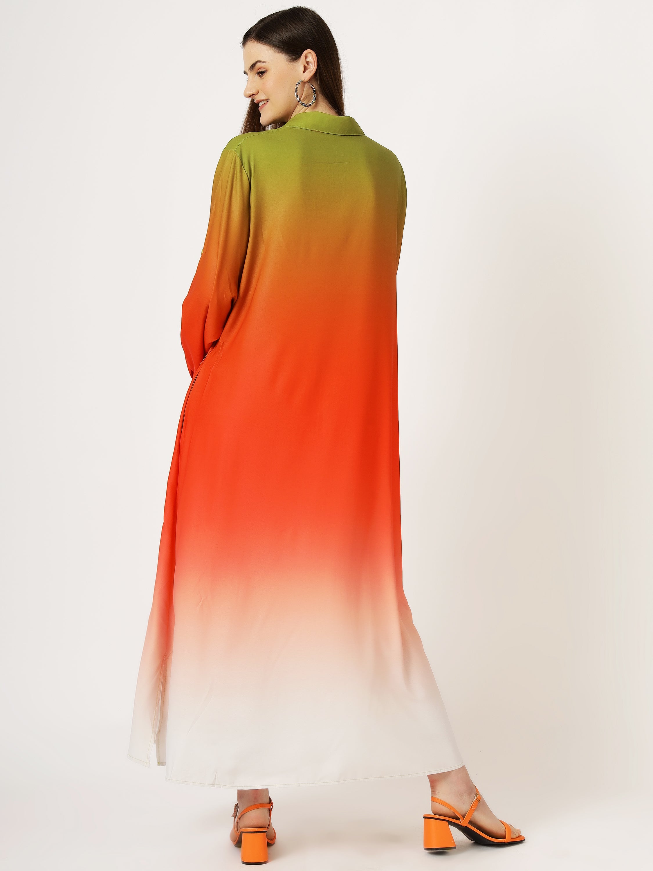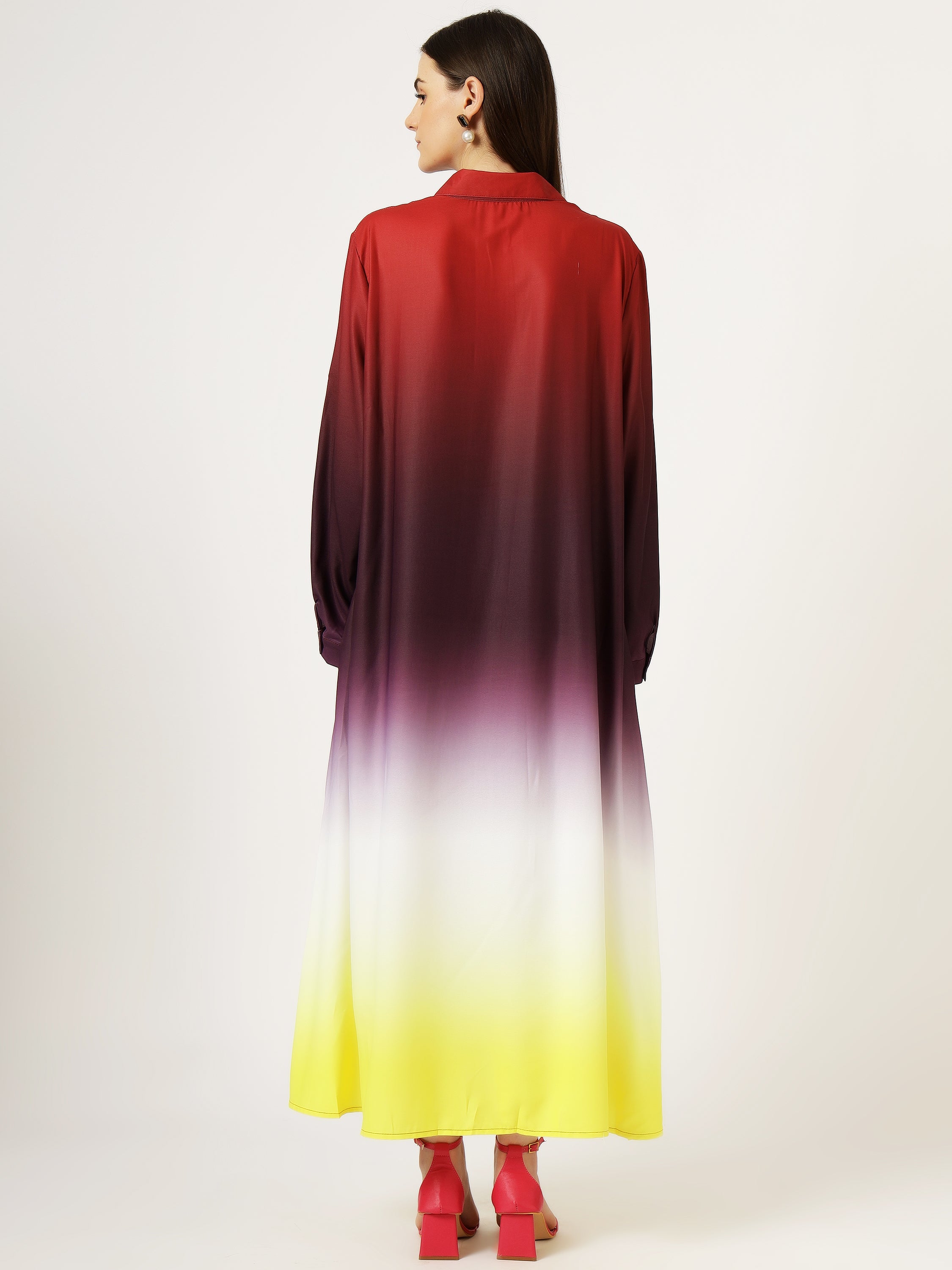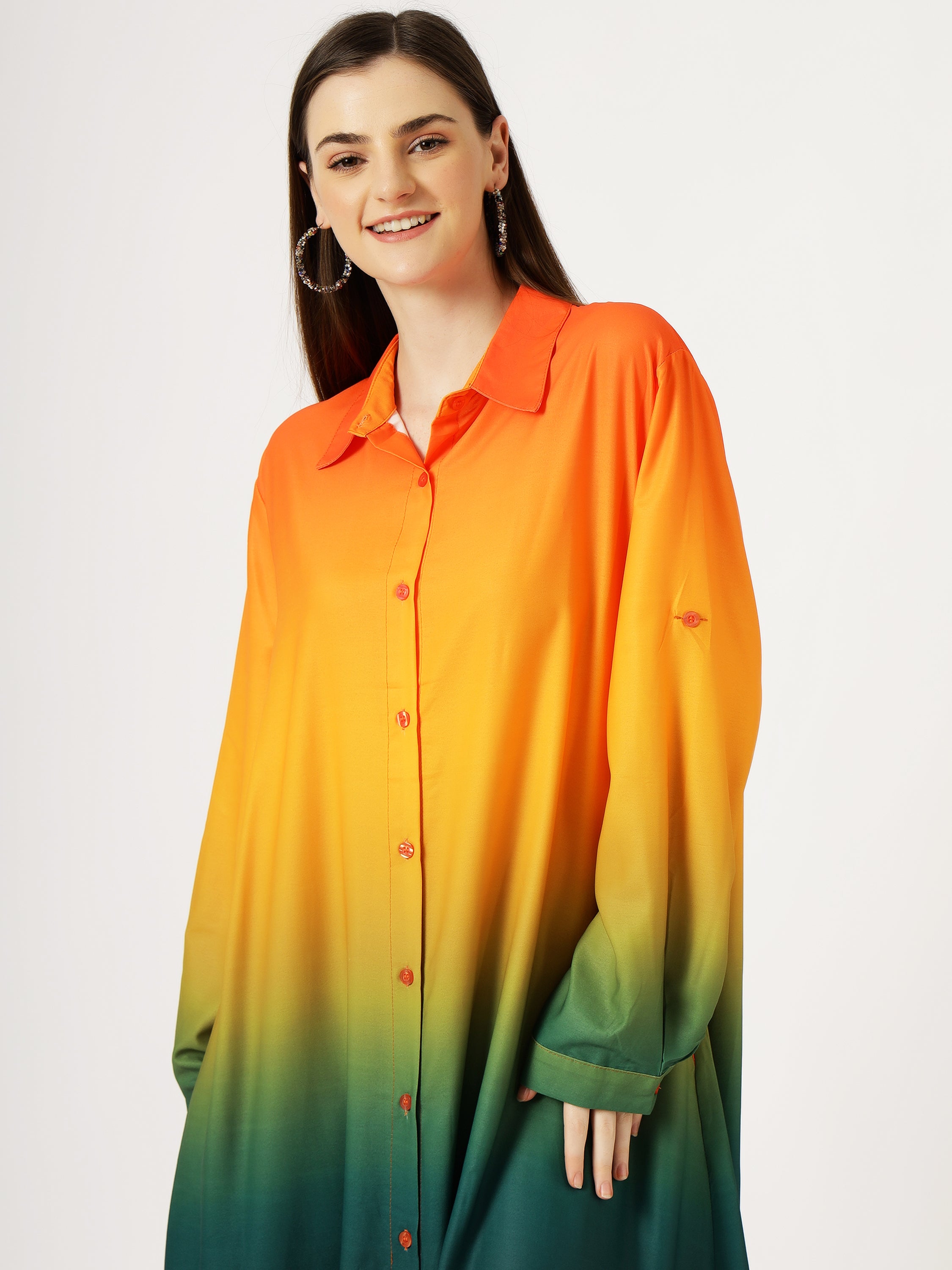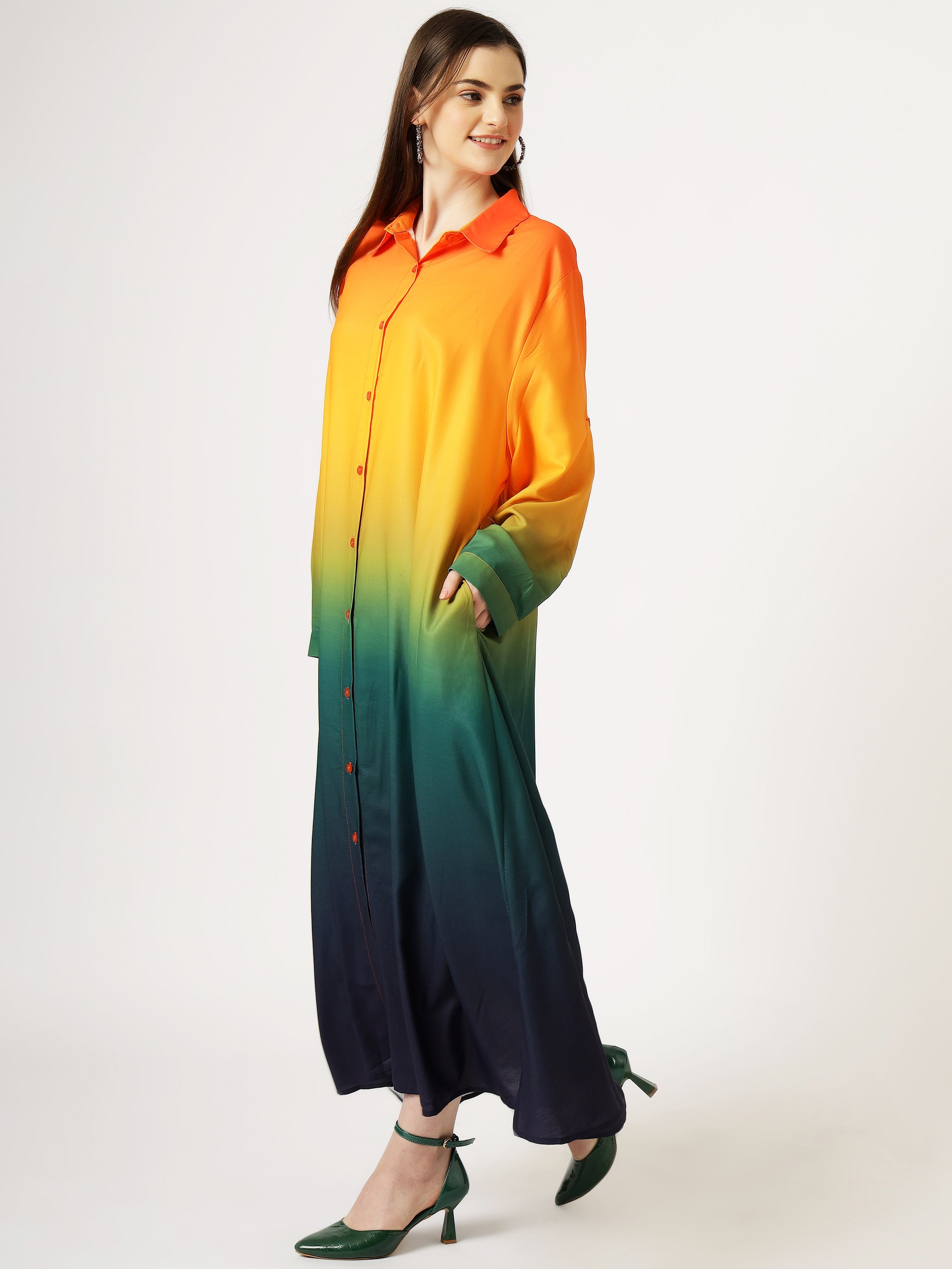 Moss Crepe Shirt Dress for Women in Green and Red Gradient