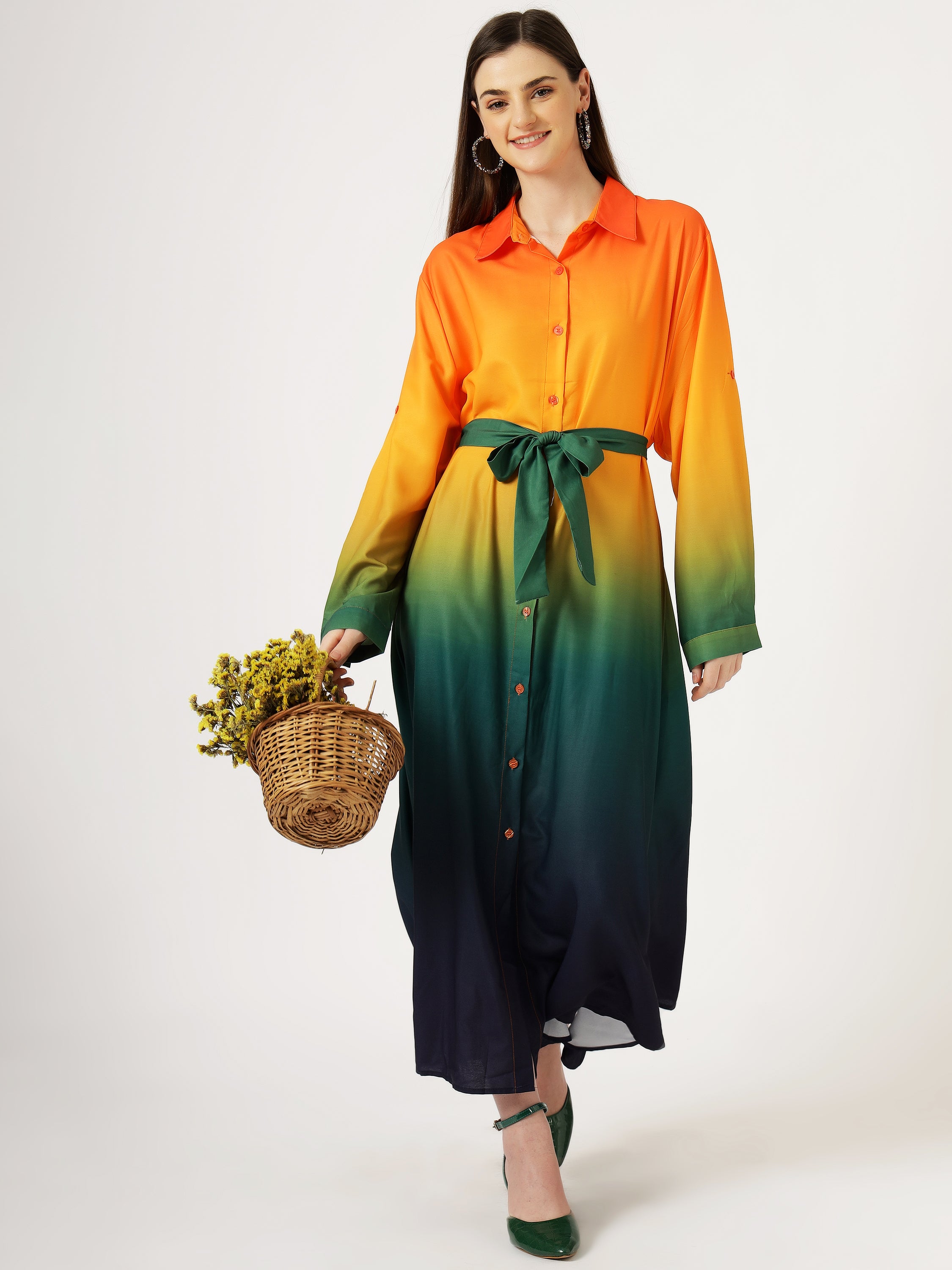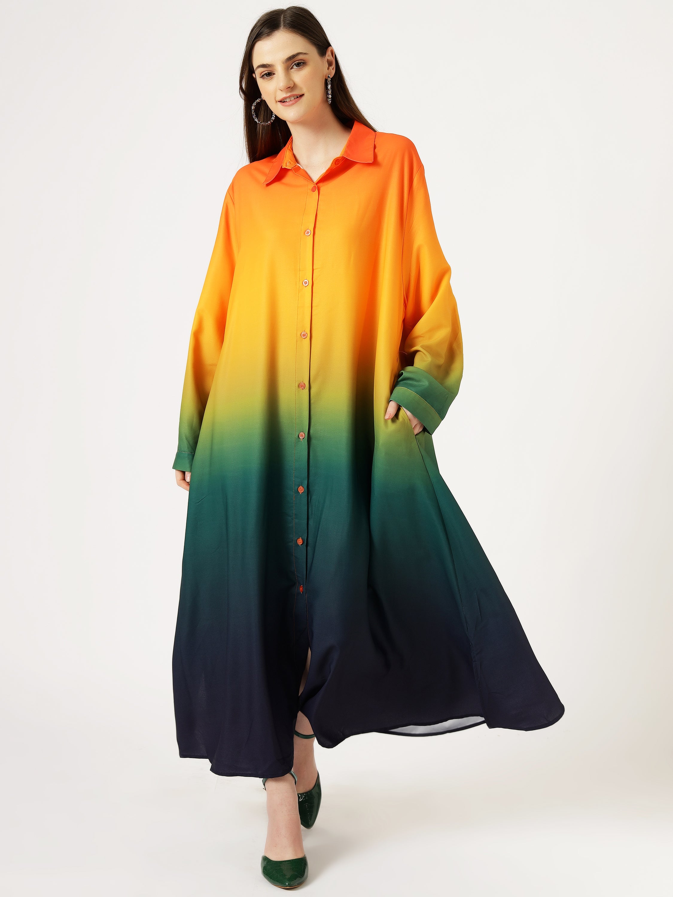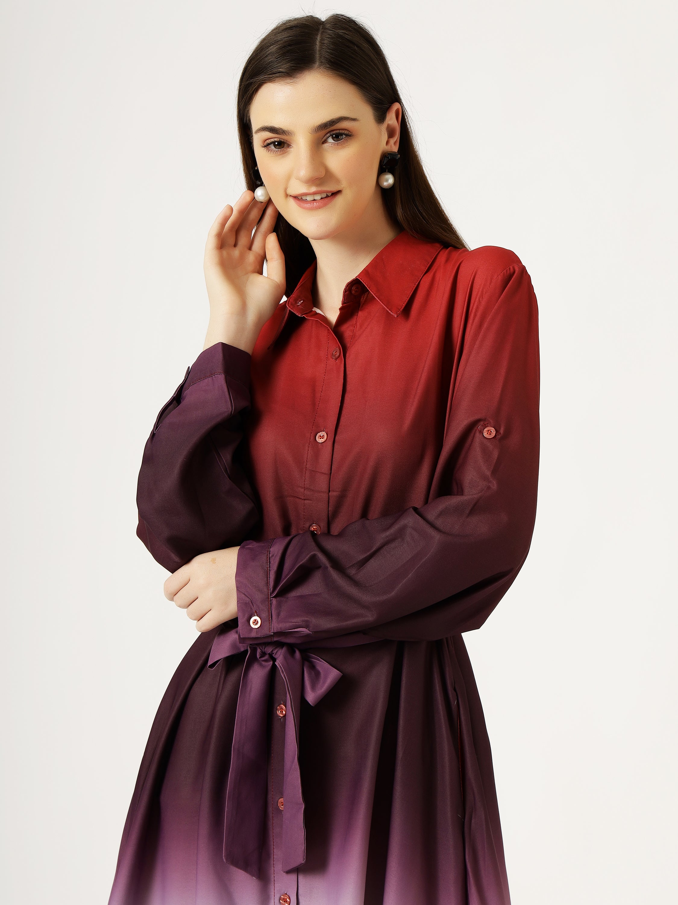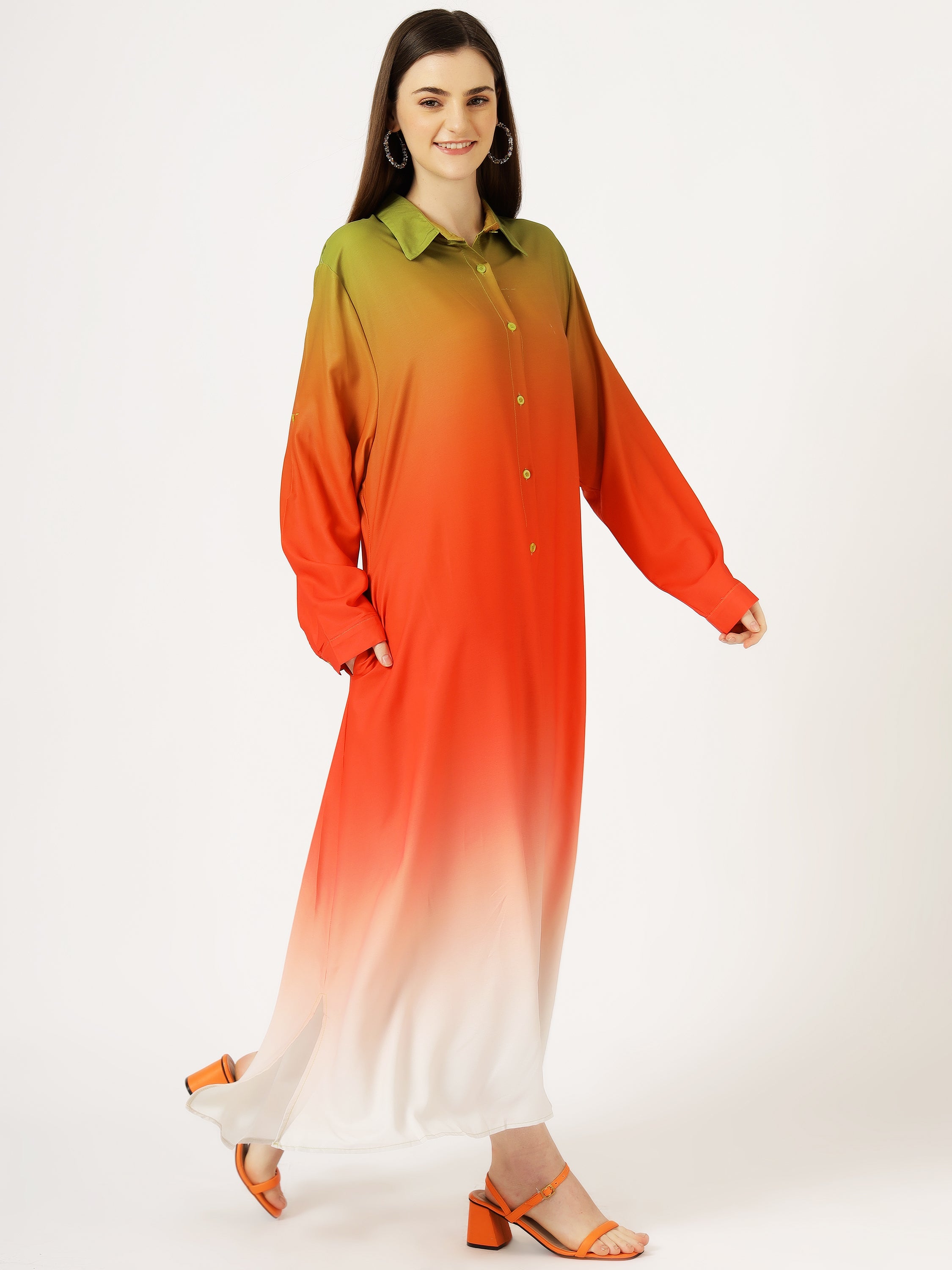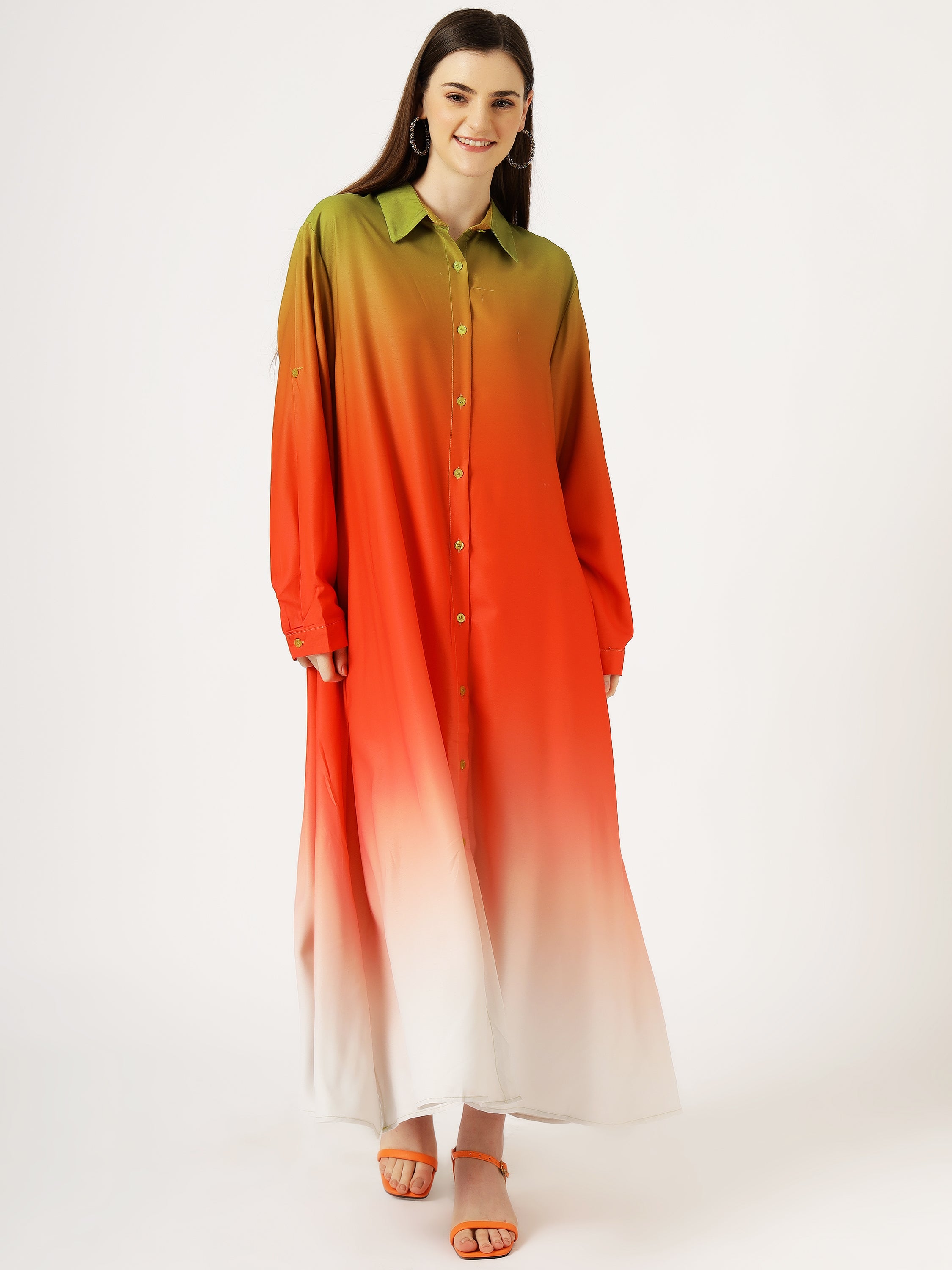 Moss Crepe Shirt Dress for Women in Green and Red Gradient