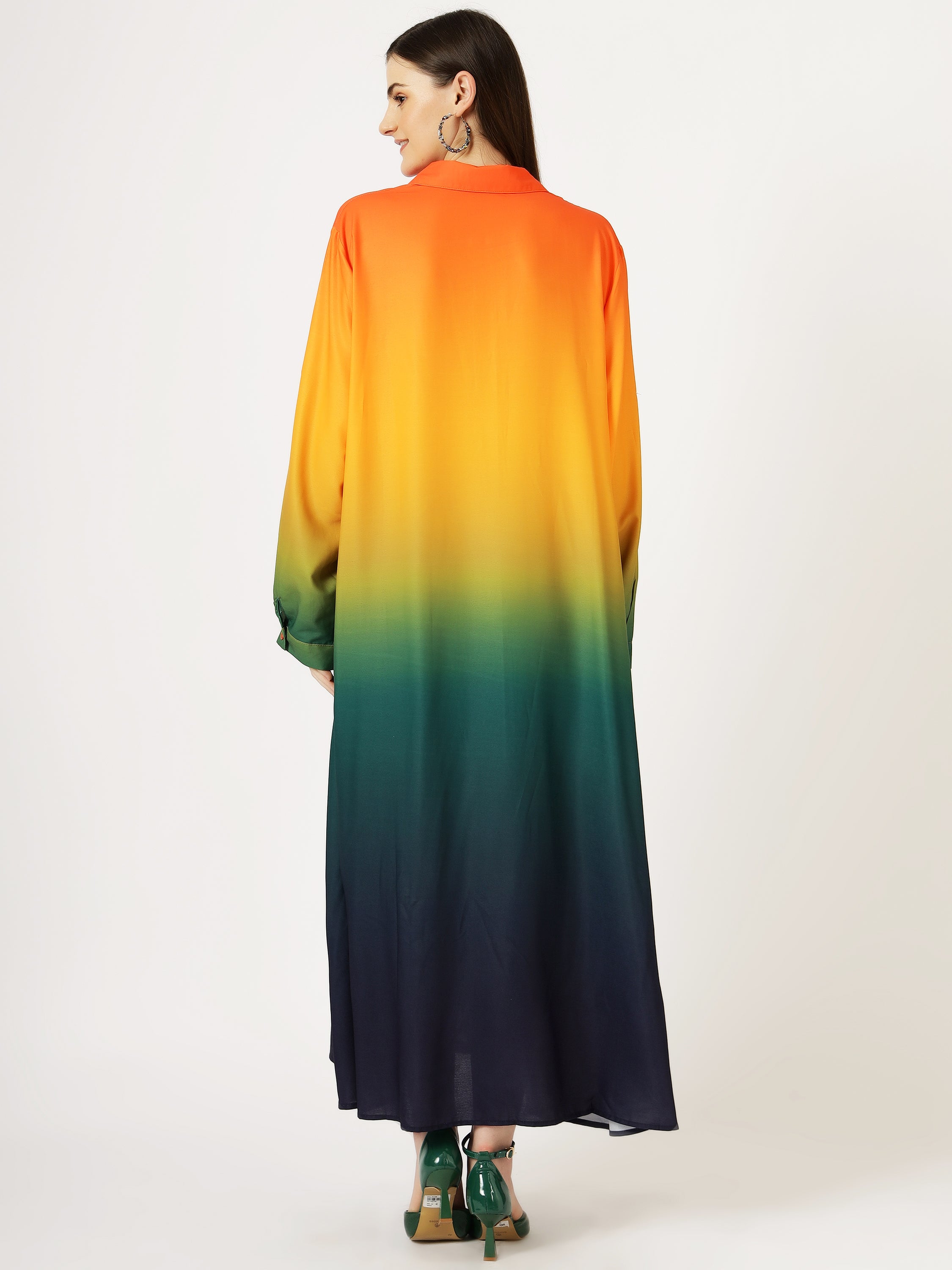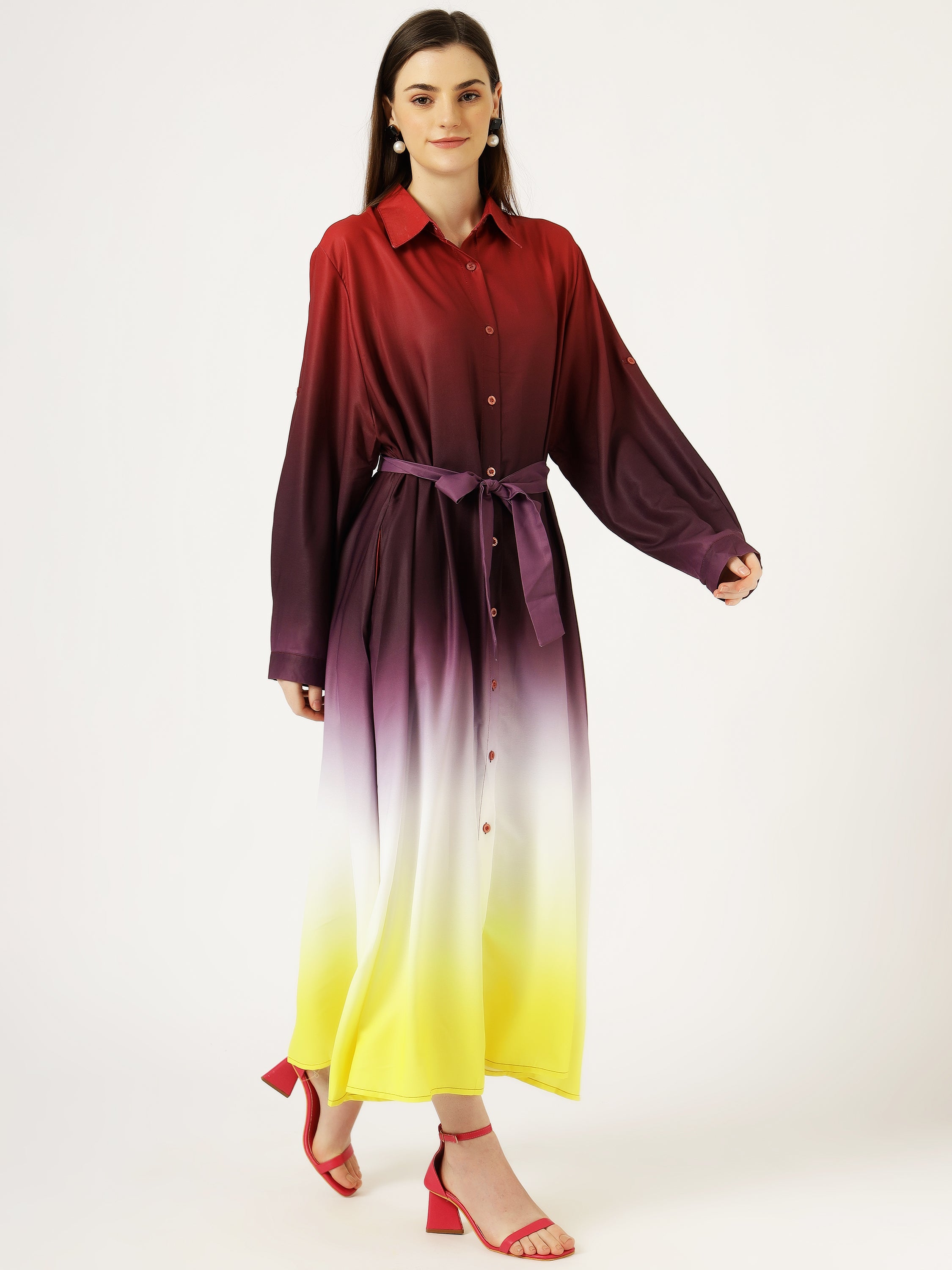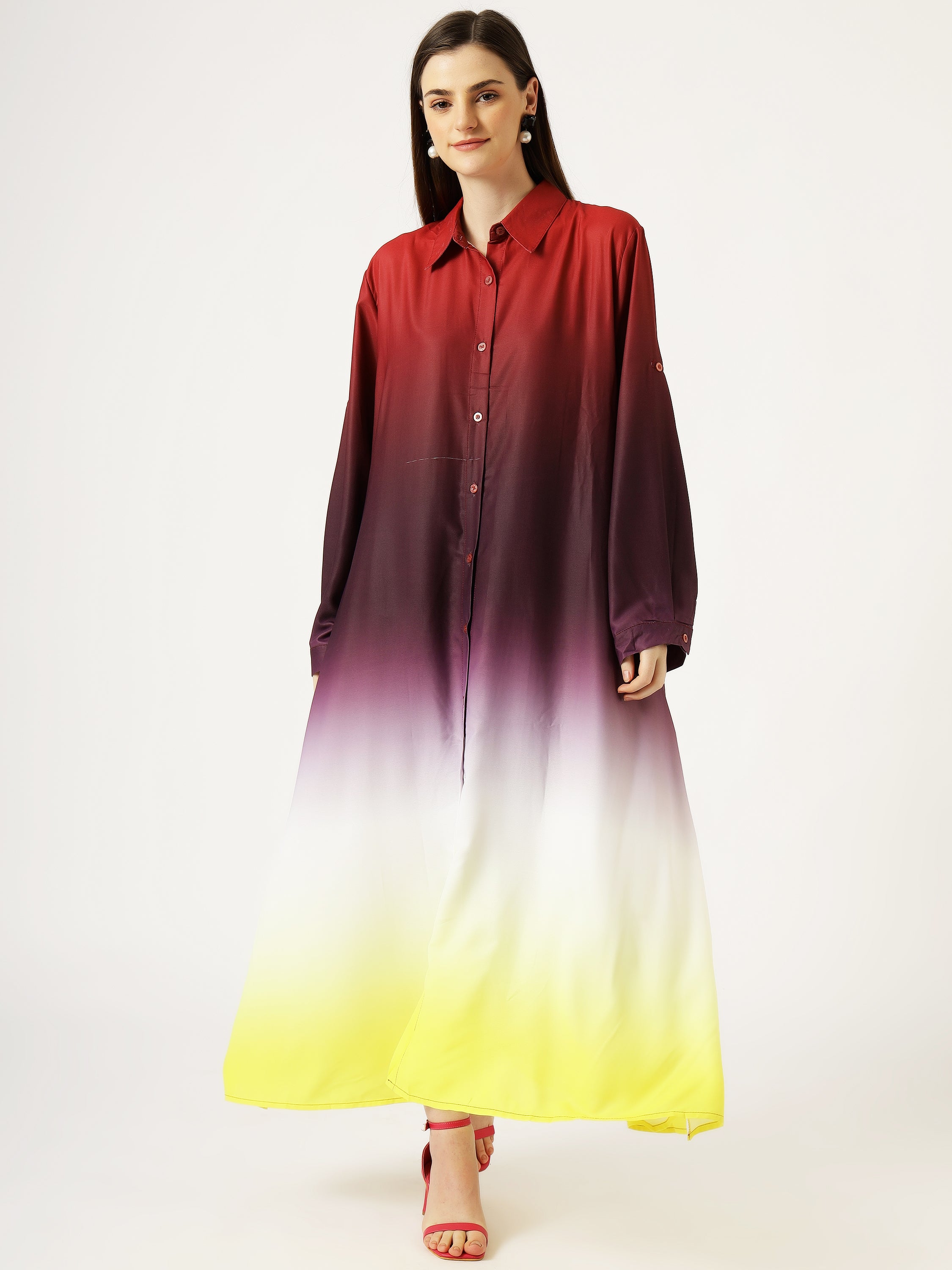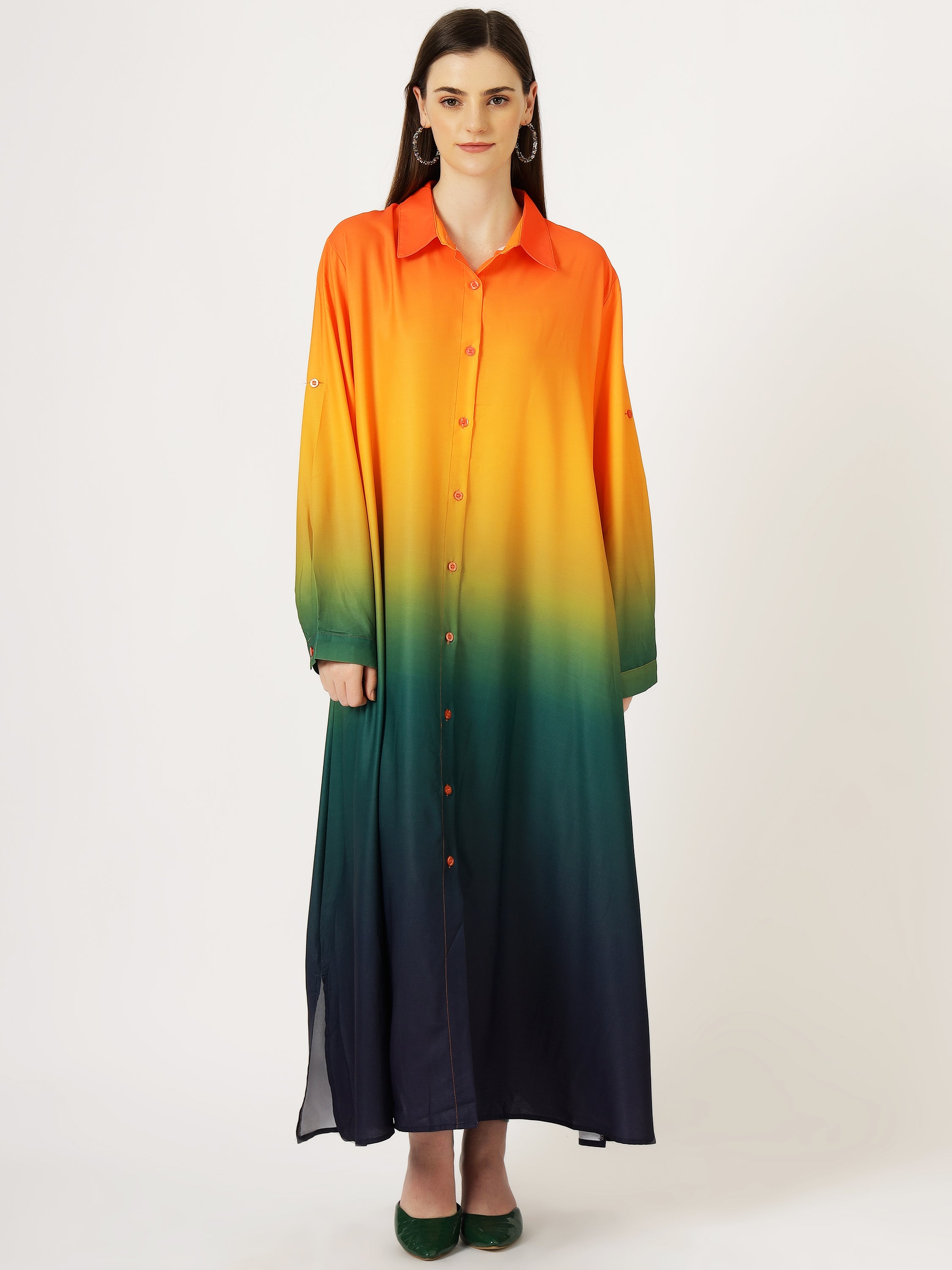 Moss Crepe Shirt Dress for Women in Green and Red Gradient