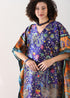 Bohemian Peacock & Floral Print Kaftan Dress - Navy Blue and Orange Tunic