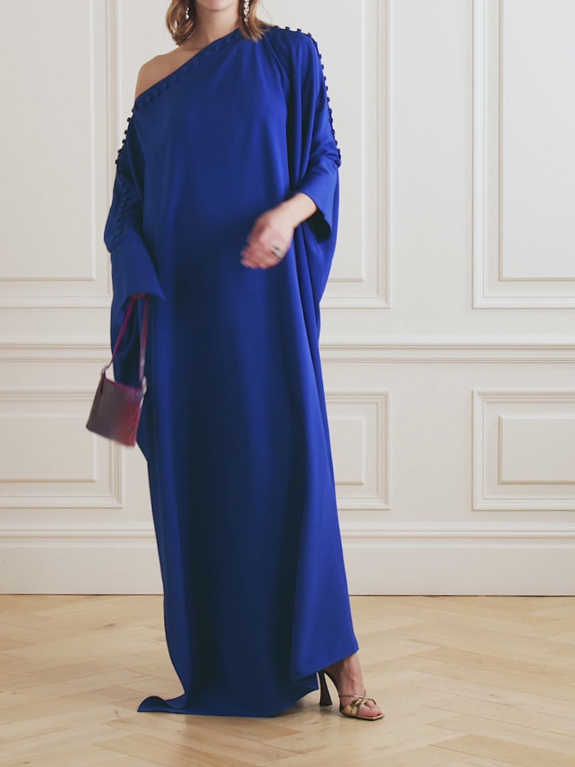 Premium Full-Length Crepe Kaftan with Elegant Button Detailing