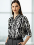 Professional Black & White Abstract Print Button-Up Shirt - Women's Office Wear Top