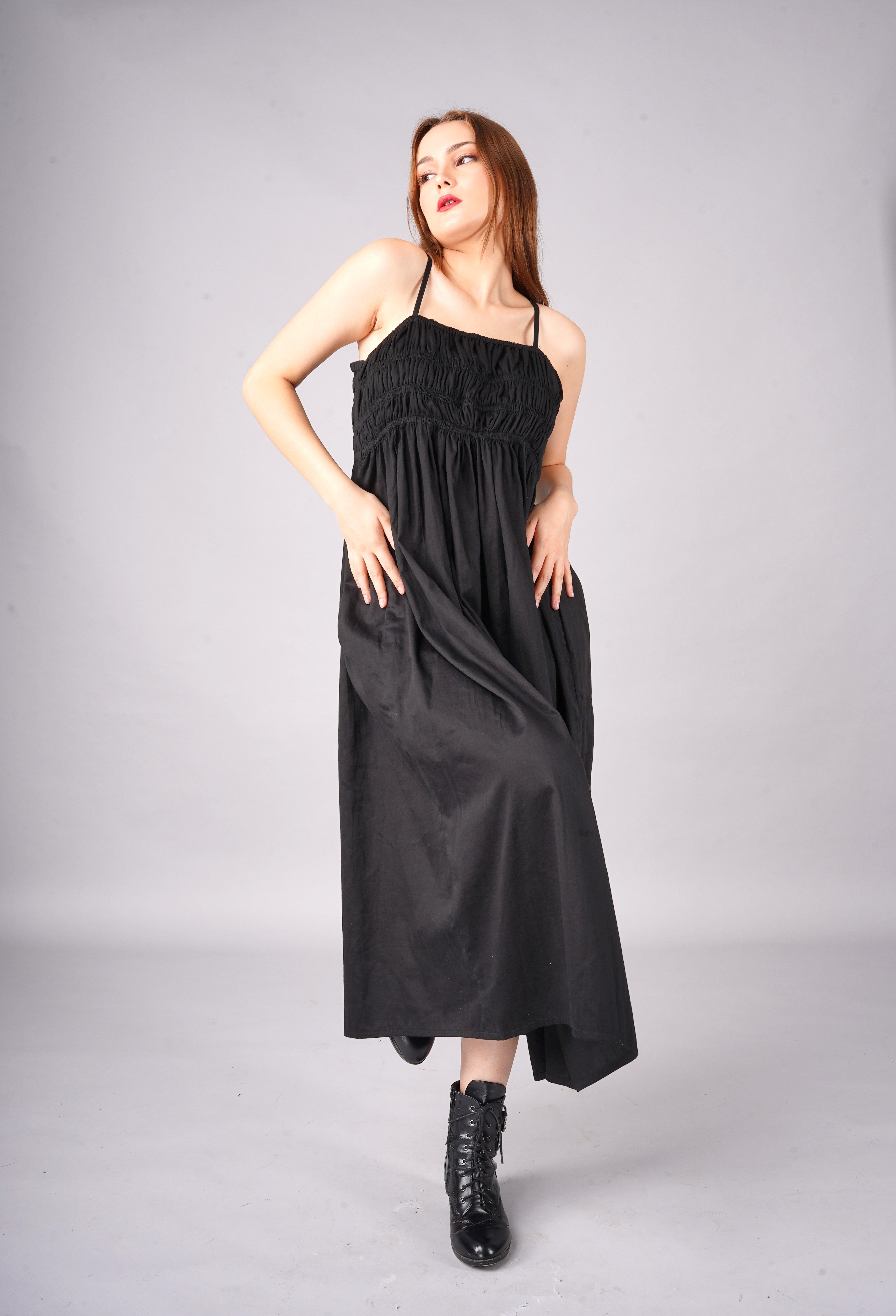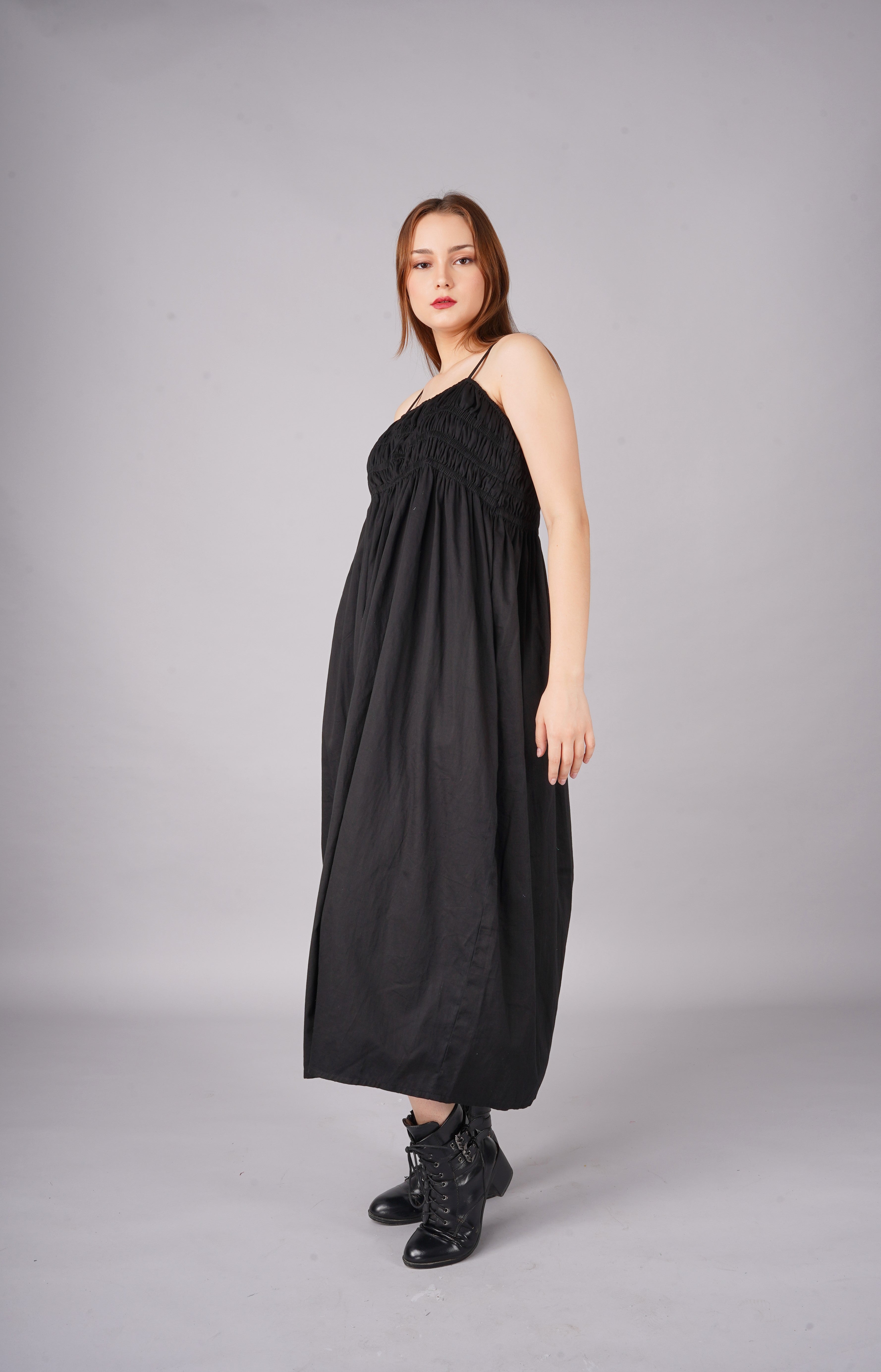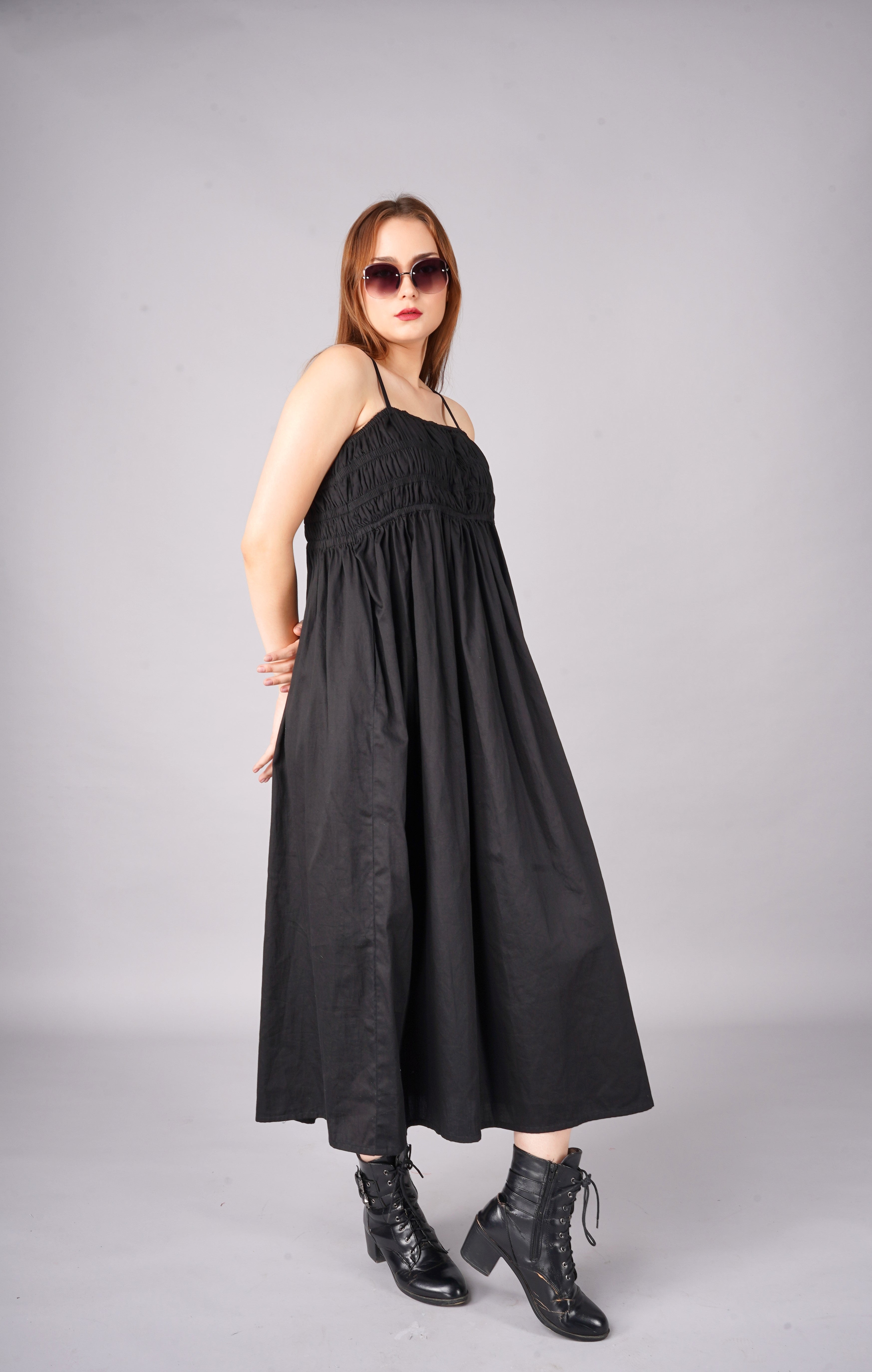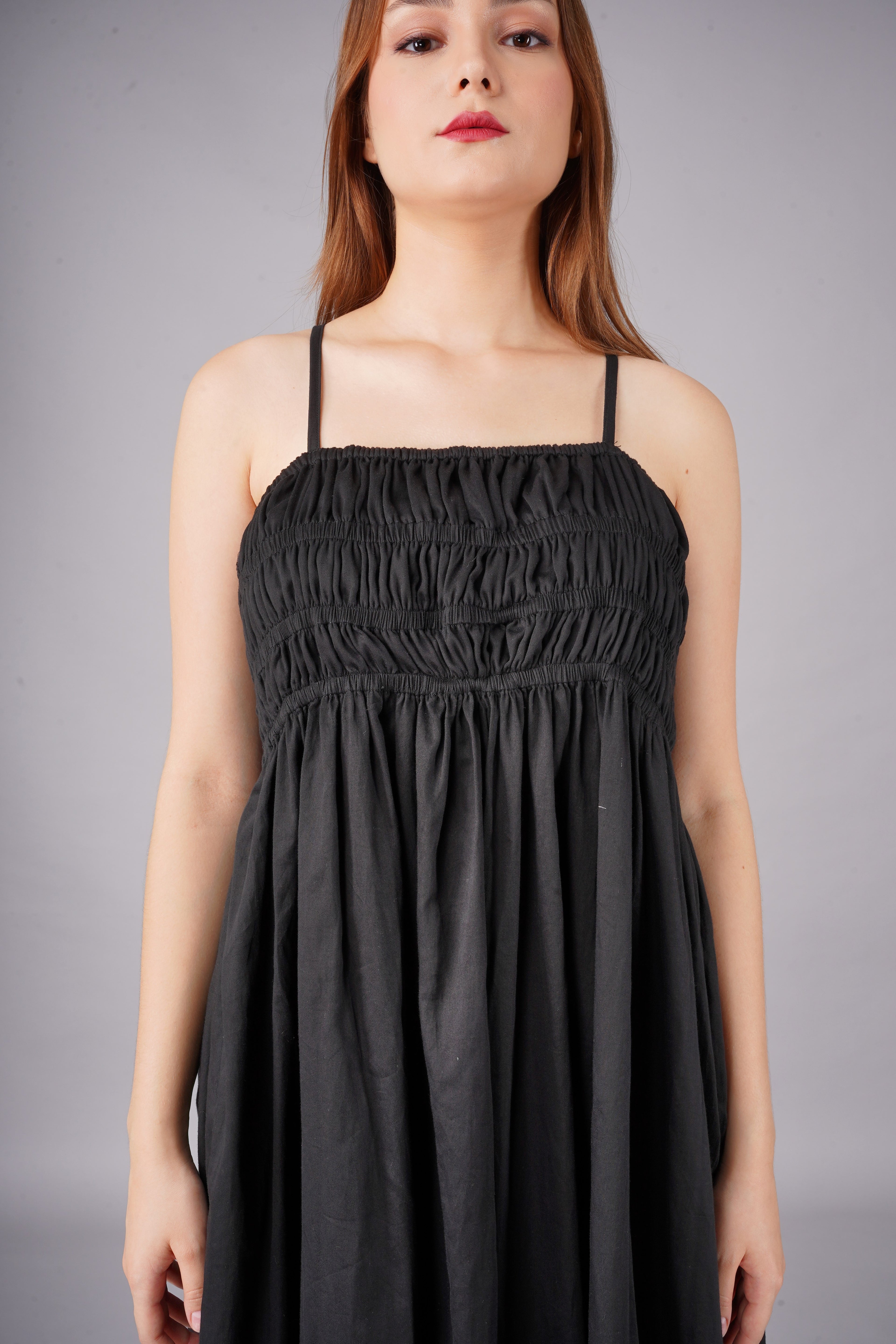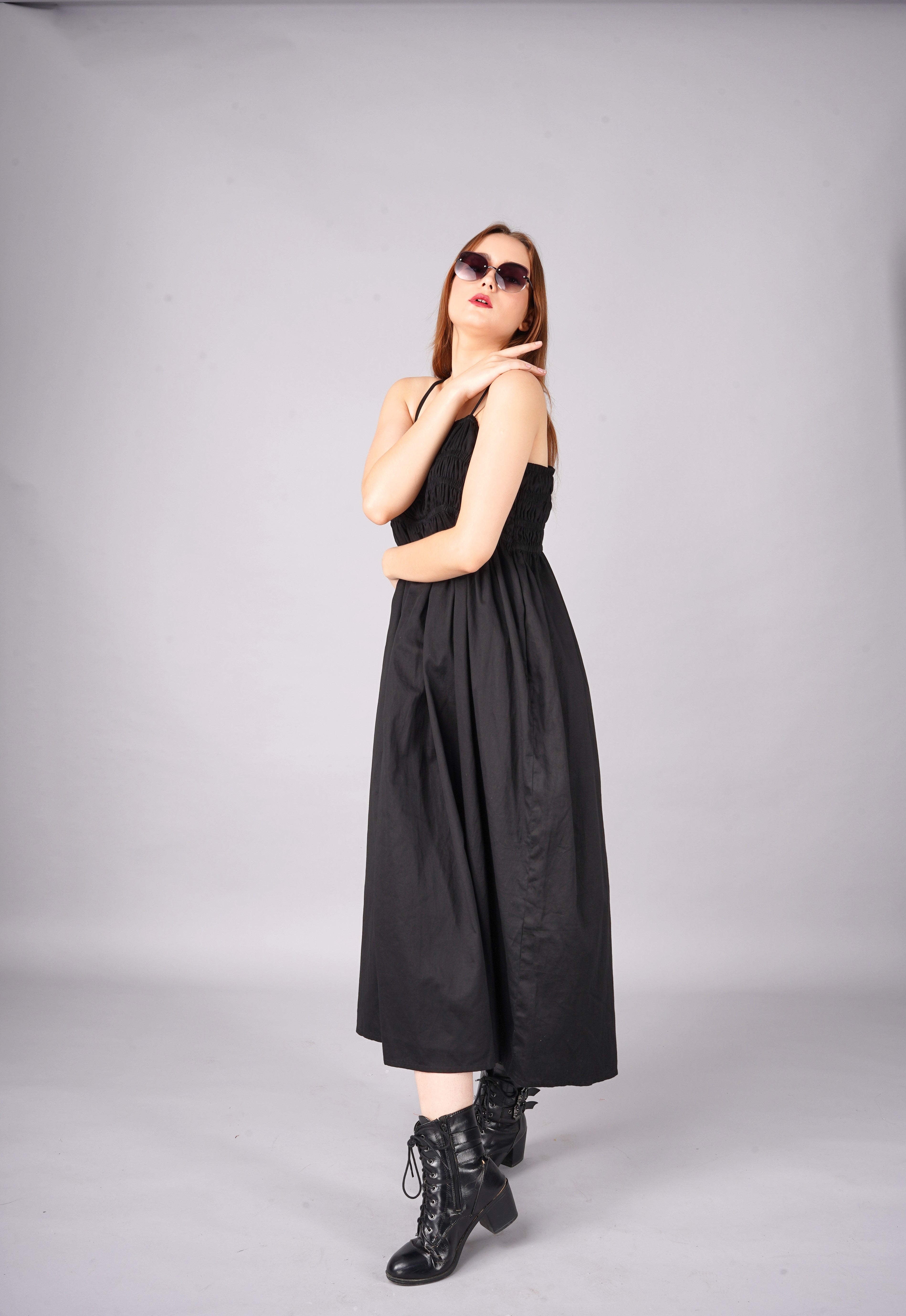 Women's Black Smocked Maxi Dress | Comfortable Spaghetti Strap Sundress | Relaxed Fit Casual Long Dress