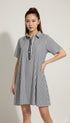 Chic Striped A-Line Shirt Dress for Women Embroidered Placket & Short Sleeves