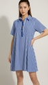 Chic Striped A-Line Shirt Dress for Women Embroidered Placket & Short Sleeves