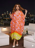 Vibrant Floral Swirl Kaftan Dress | Pink Orange Yellow Printed V-Neck Maxi Kaftan | Loose Fit Resort Wear