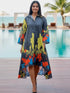 Boho Tailor Print Retro Studio Theme Bell Sleeve Mini Dress for Women - Chic V-Neck Loose Fit A-Line Short Dress with Unique Artistic PrintBoho Tailor Print Retro Studio Theme Bell Sleeve Mini Dress for Women - Chic V-Neck Loose Fit A-Line Short Dress with Unique Artistic Print