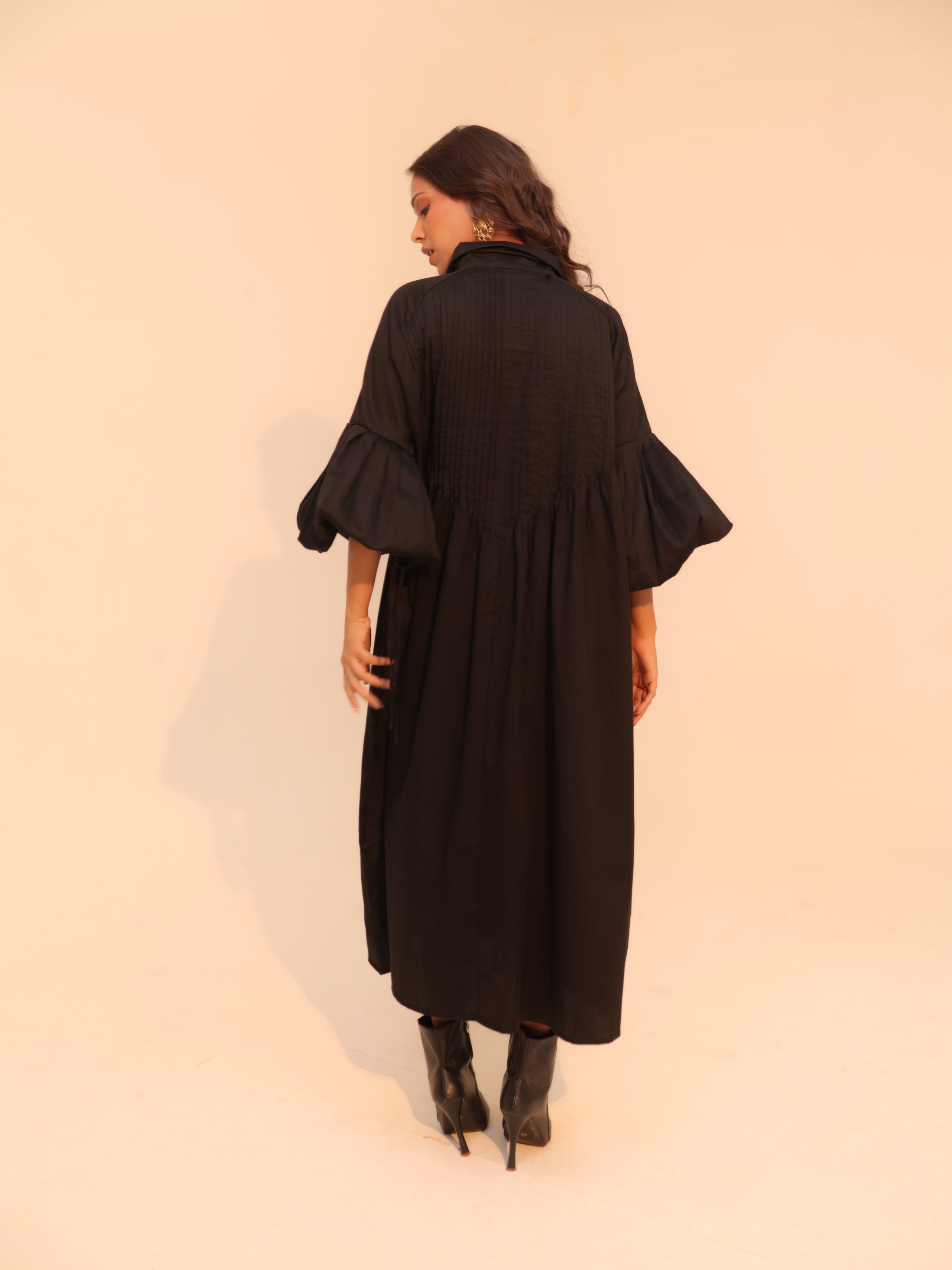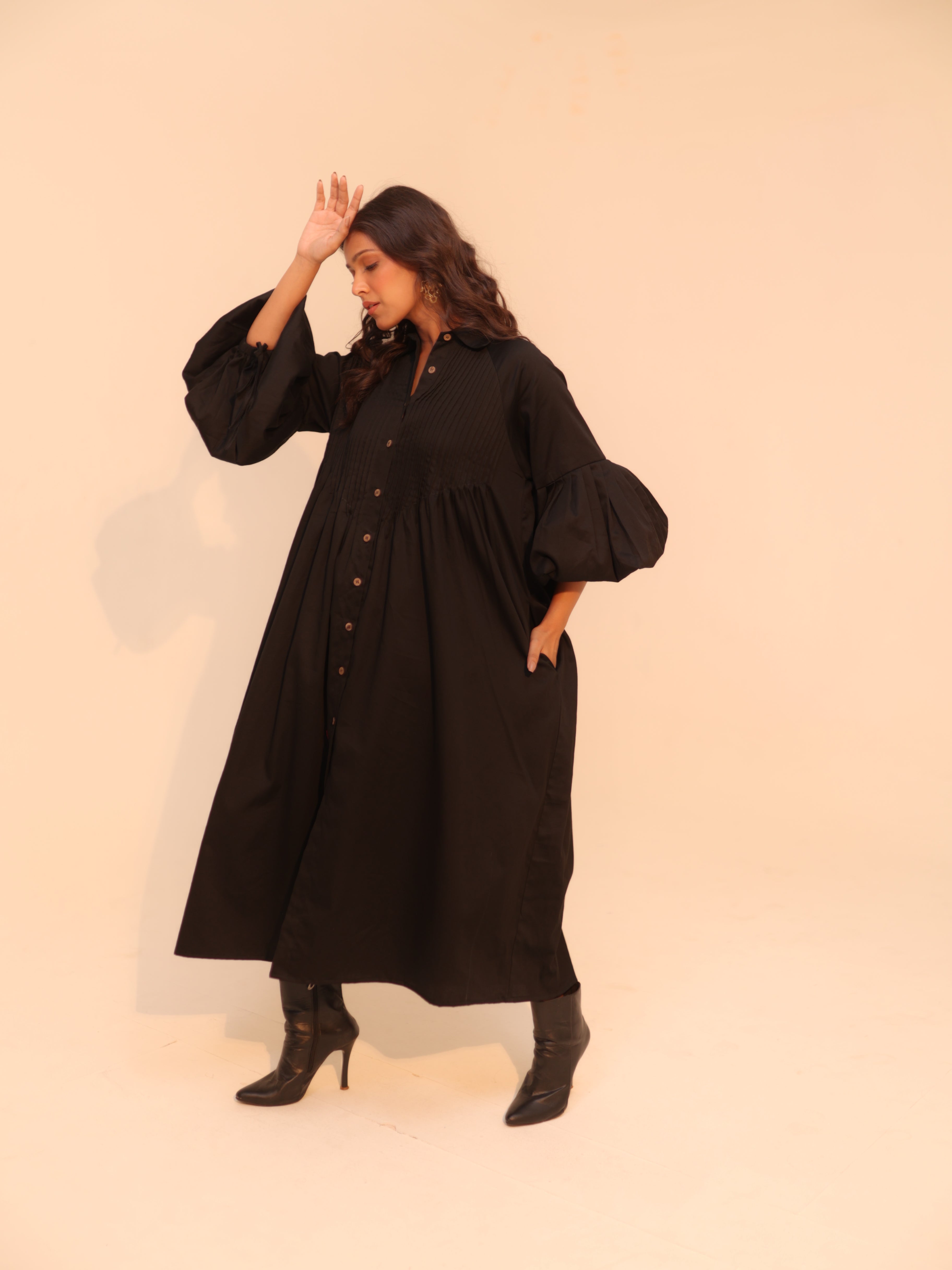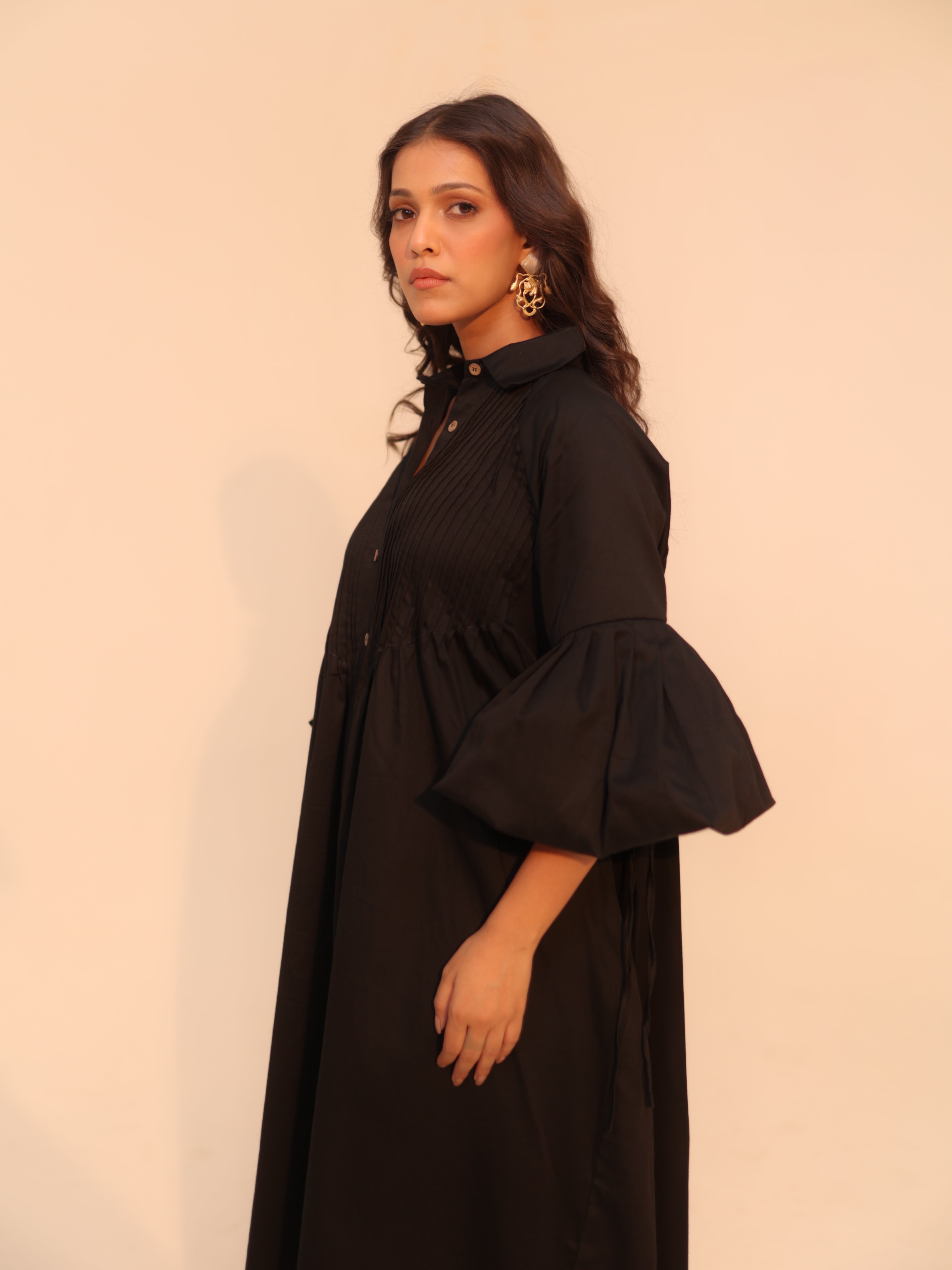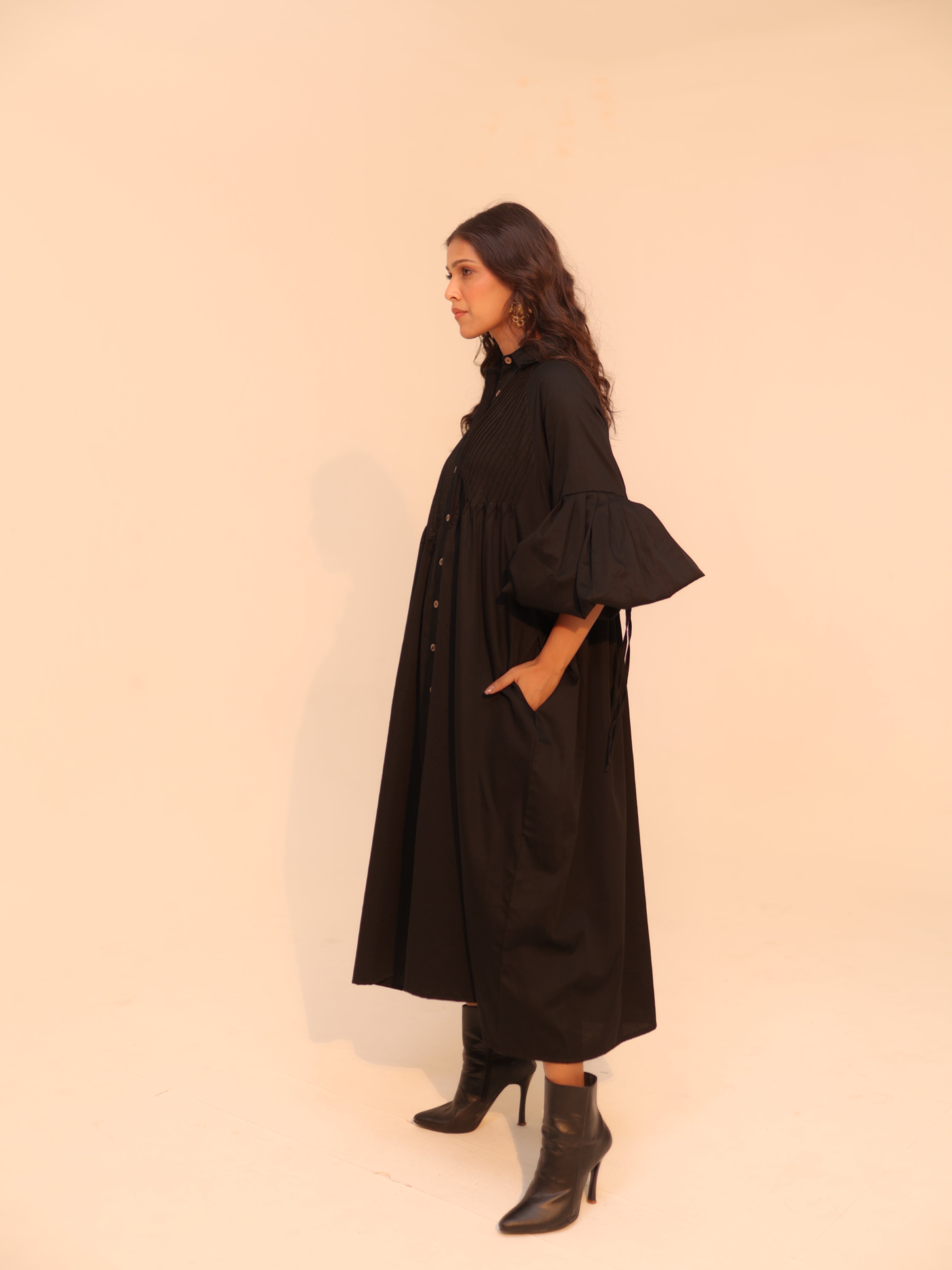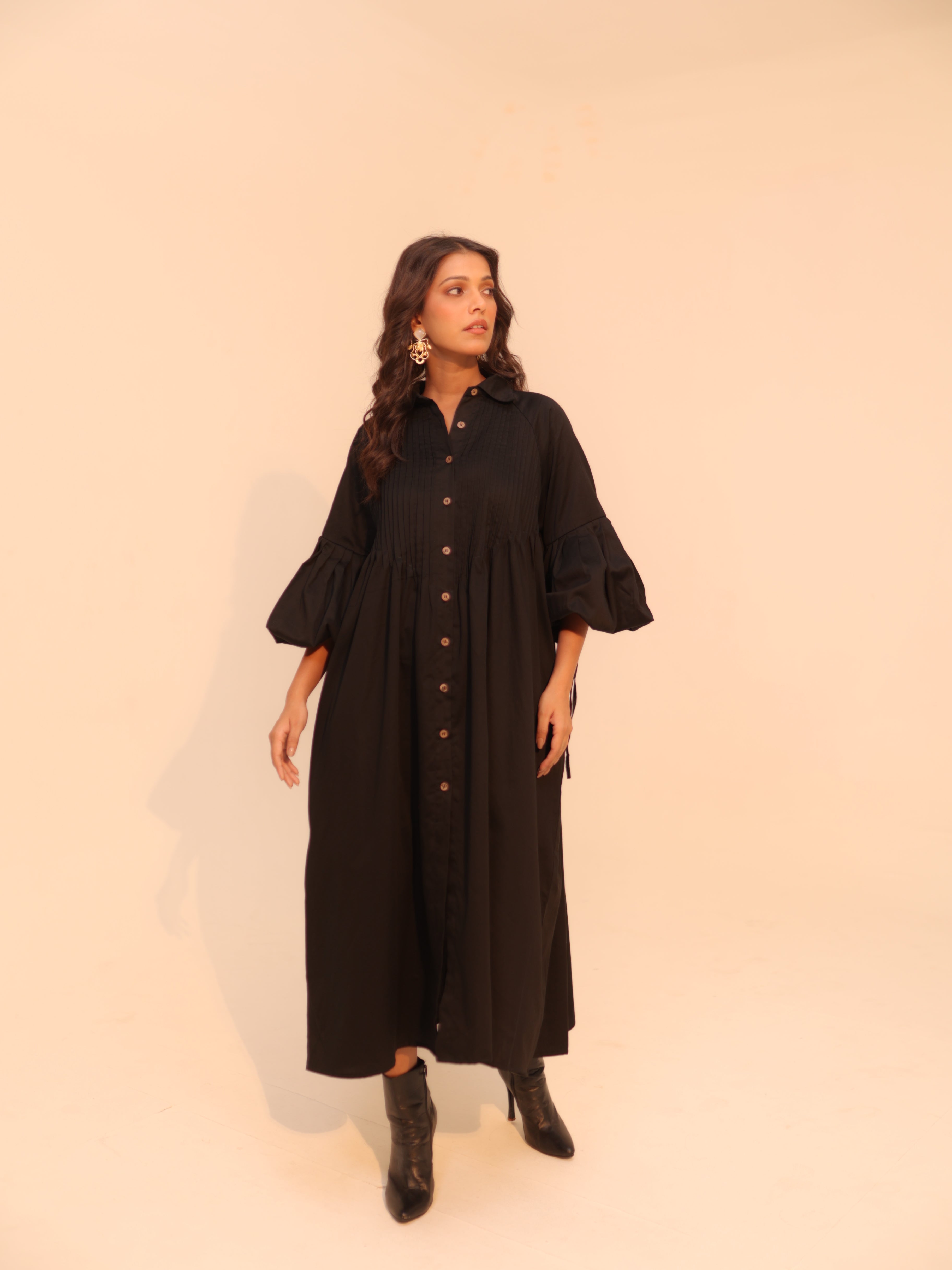 Wine Shirt Dress | Soft Cotton | Loose Pattern | Turn Down Collar | with Pockets