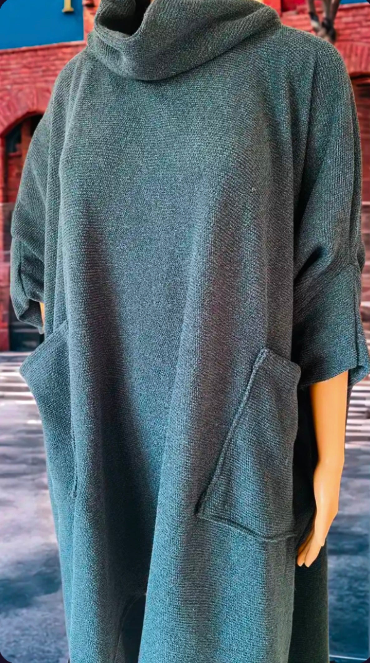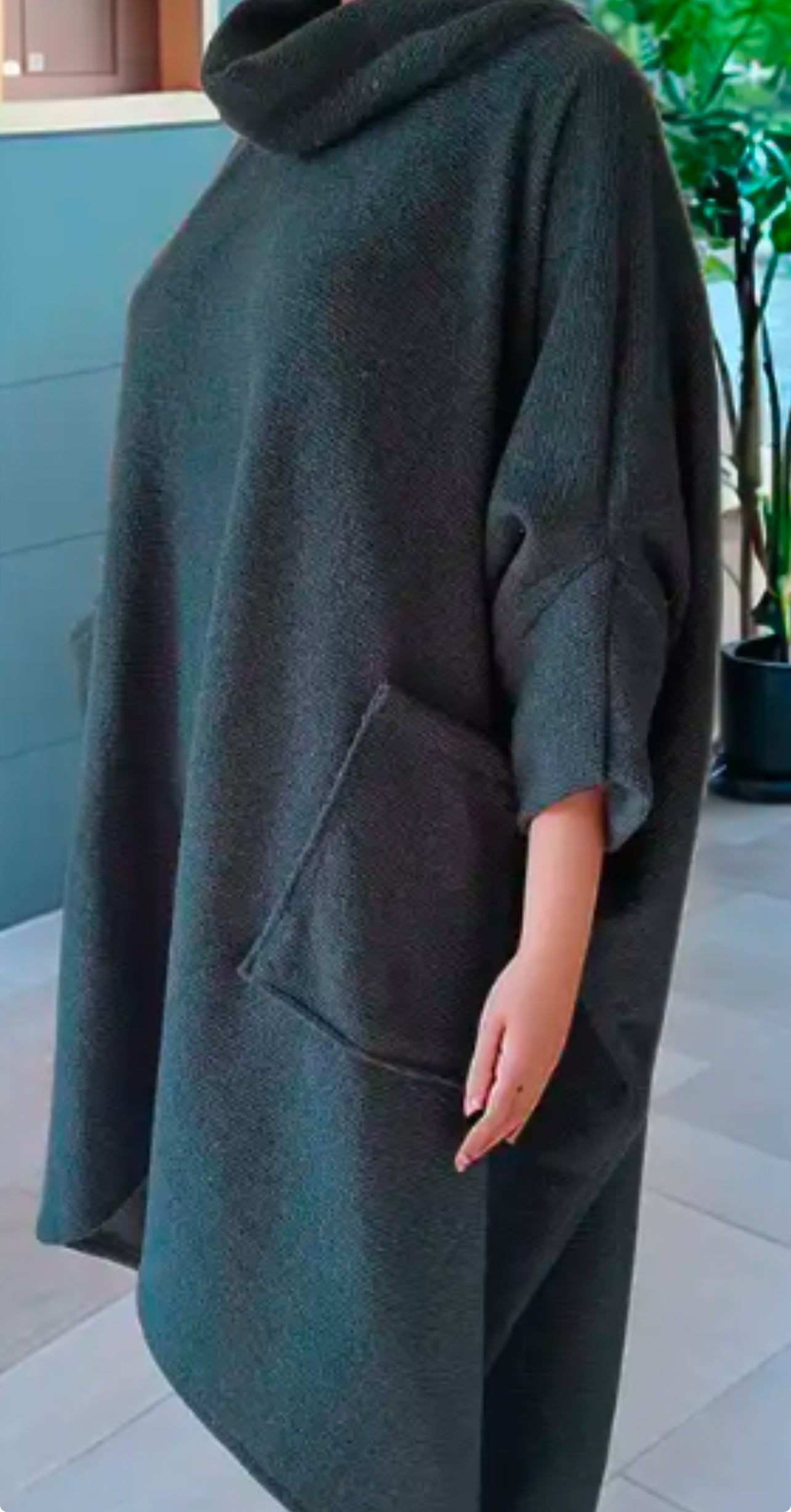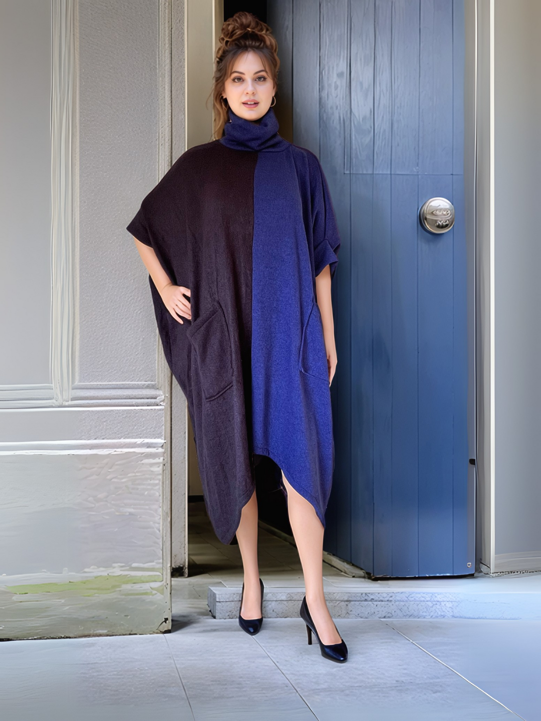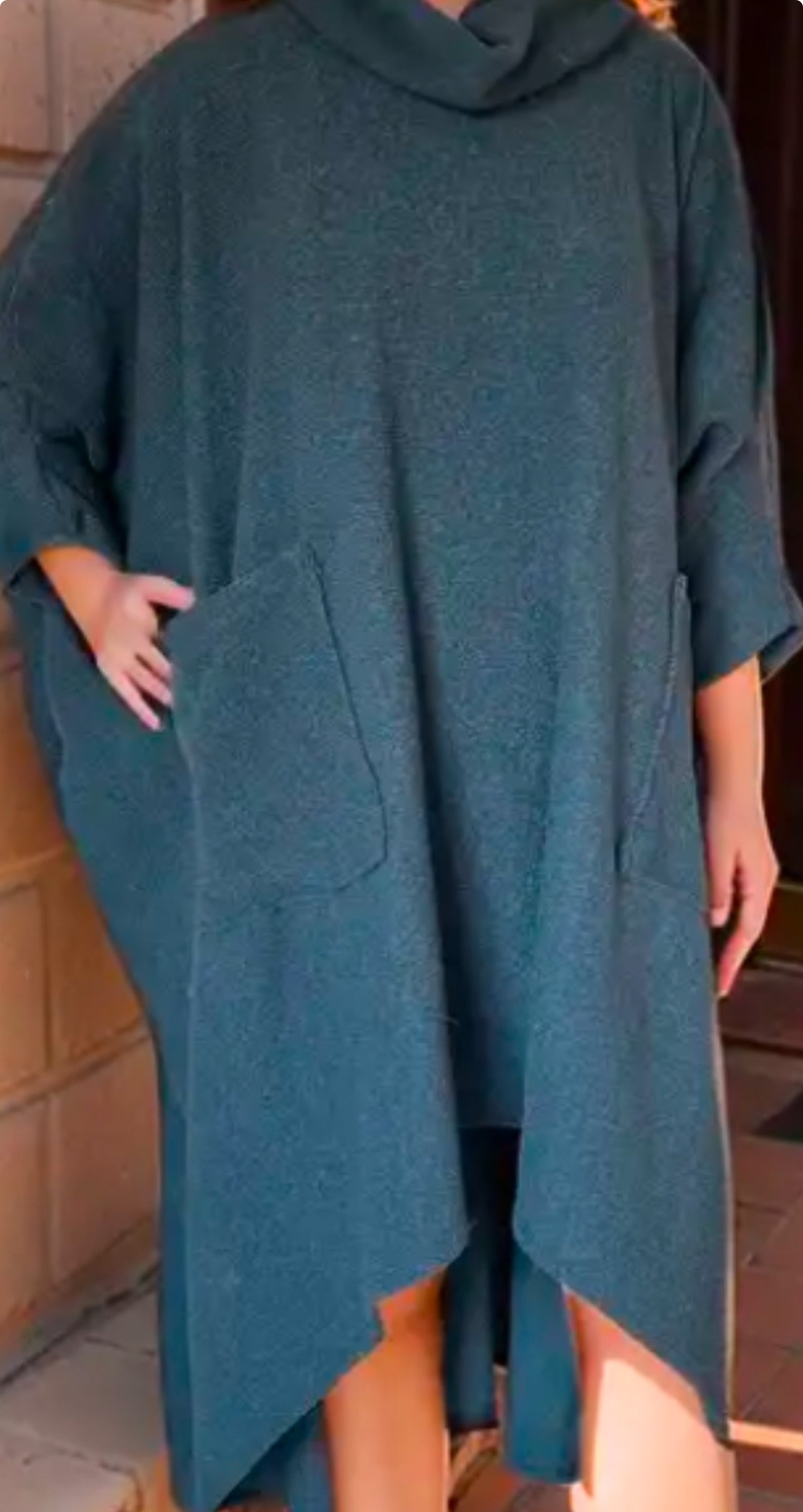 This winter woolen high-neck dress features a loose, relaxed pattern, offering both comfort and style. Crafted from soft, warm fabric, it’s perfect for staying cozy during colder months while maintaining an effortlessly chic look. Ideal for casual outings or lounging in comfort.