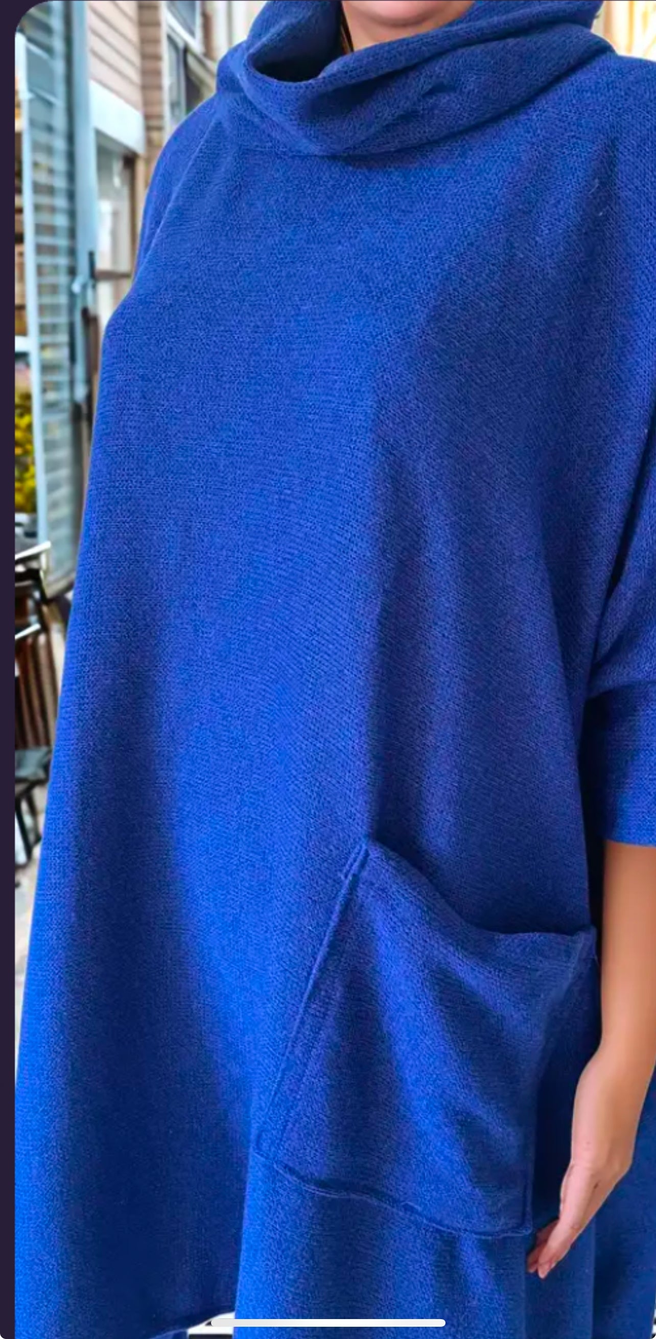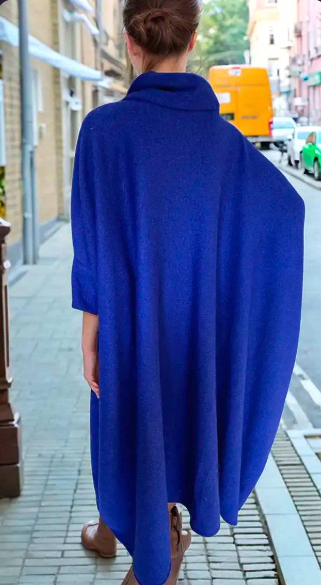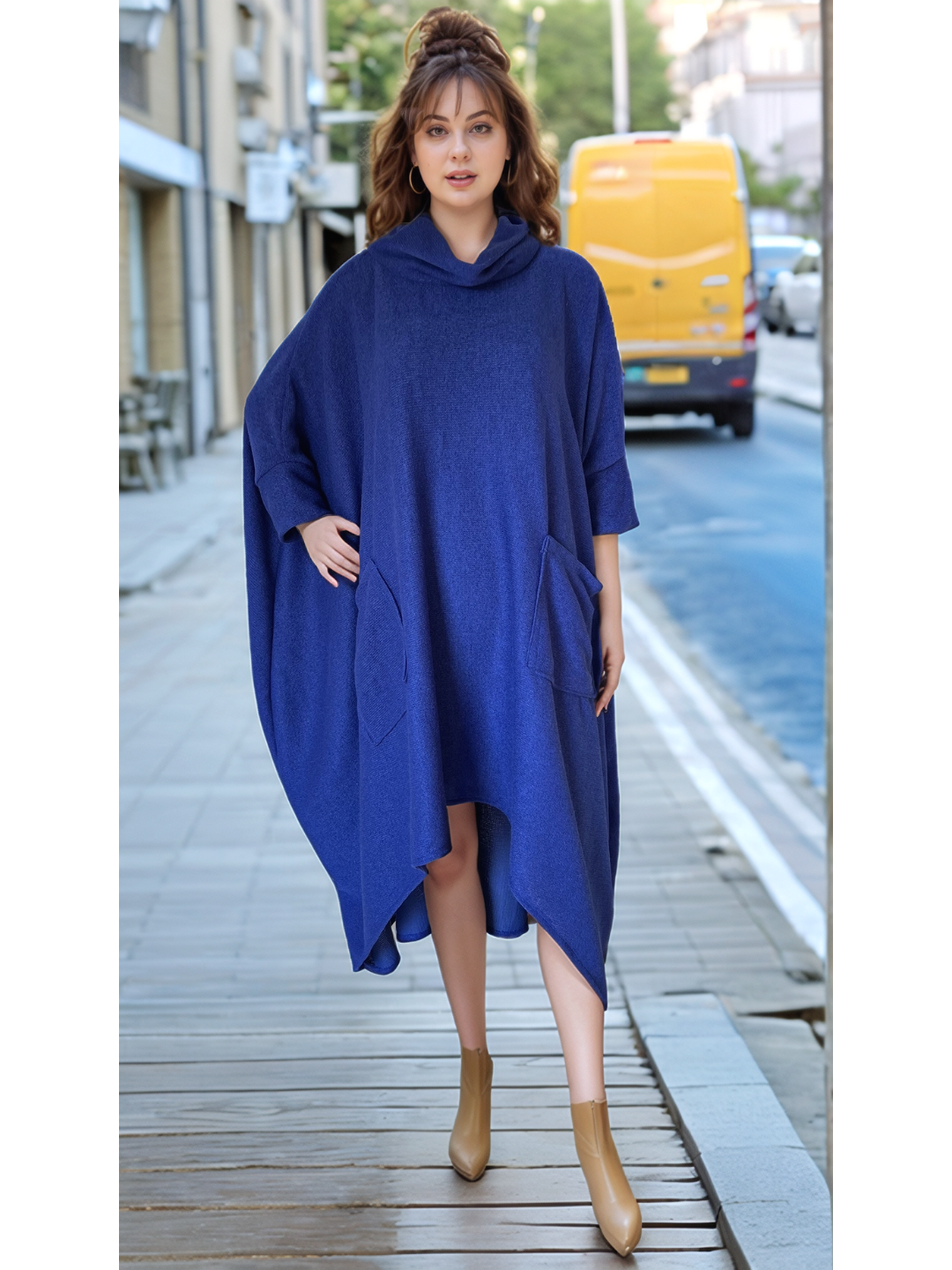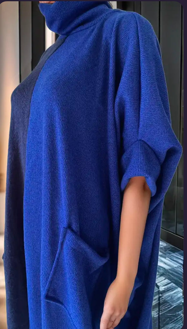 Elegant Royal Blue Batwing Sleeve Mini Dress for Women | Chic High Neck Loose Fit Cocktail & Casual DressElegant Royal Blue Batwing Sleeve Mini Dress for Women | Chic High Neck Loose Fit Cocktail & Casual Dress