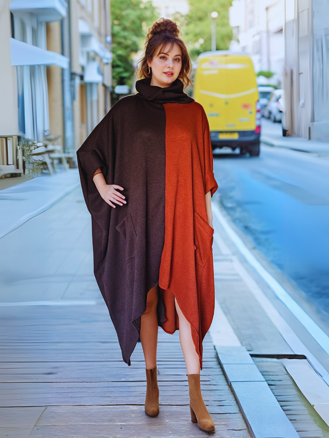 Winter Woolen high neck Dress_Rusty Orange & Brown